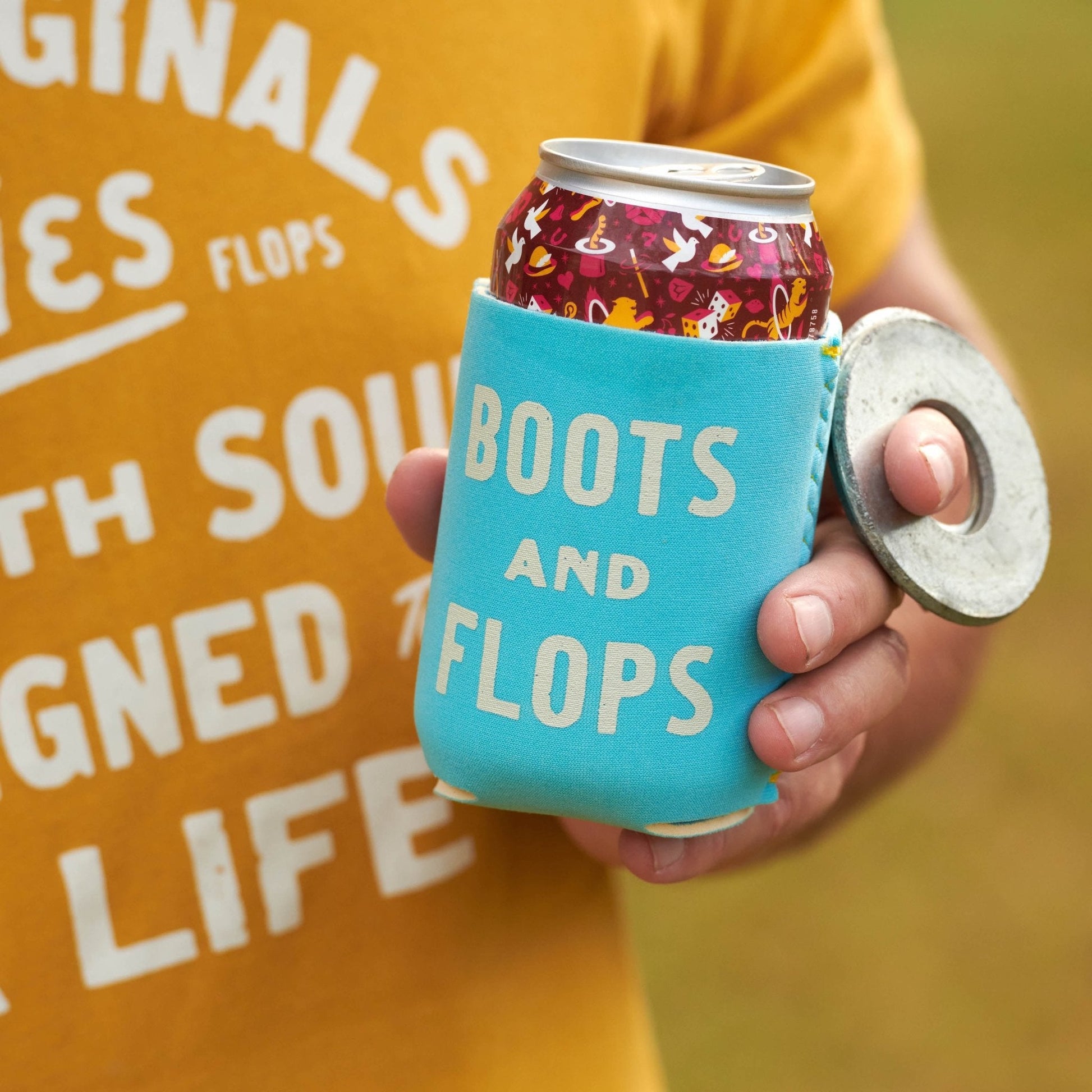Beers were not meant to be warm. And hands were not meant to be cold. The Alvies Can Cooler helps maintain the natural order of the universe by keeping your beer icy cold and your hand fleshy warm. All while letting people know you’re down with the beautiful balance of boots and flip-flops.