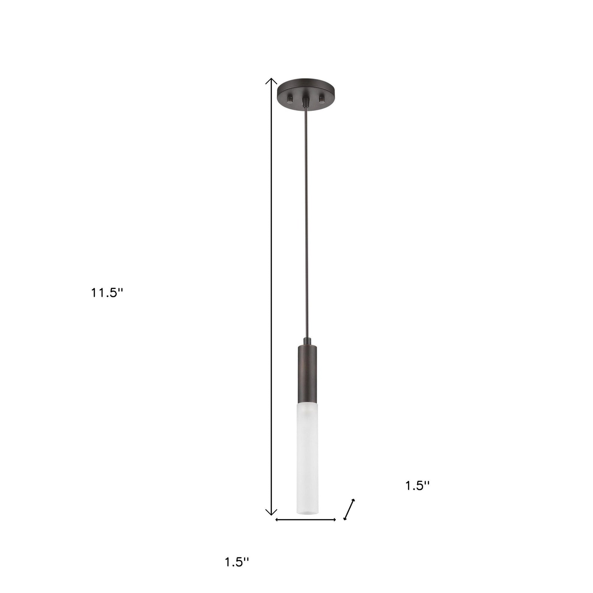 This Bronze Pendant Hanging Light with Frosted Glass Shade is simplicity redefined in terms of design and utility. The ceiling bracket has a curved circular design and an antique bronze finish on it. Attached to it there is a small cap through which a black wire comes down. The black wire goes into a thin and narrow dull gold cylindrical shape which is then attached to the top of the main light. The light has a large bulb holder and a shade that is made from frosted white glass. This light has a great light dispersion and a very minimal presence which makes it great for any smaller spaces you may have in your home. 11.5" H x 1.5" W x 1.5" D