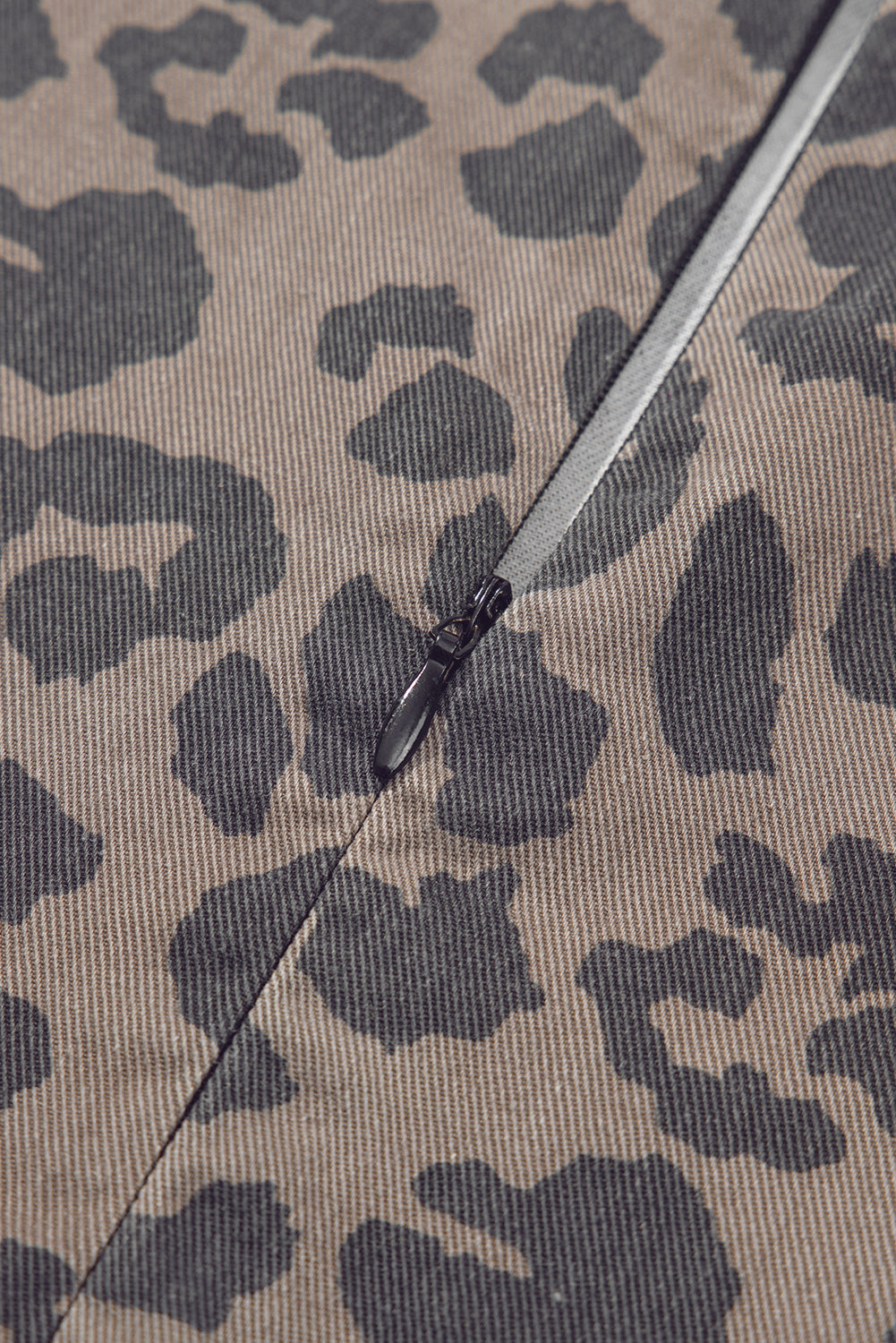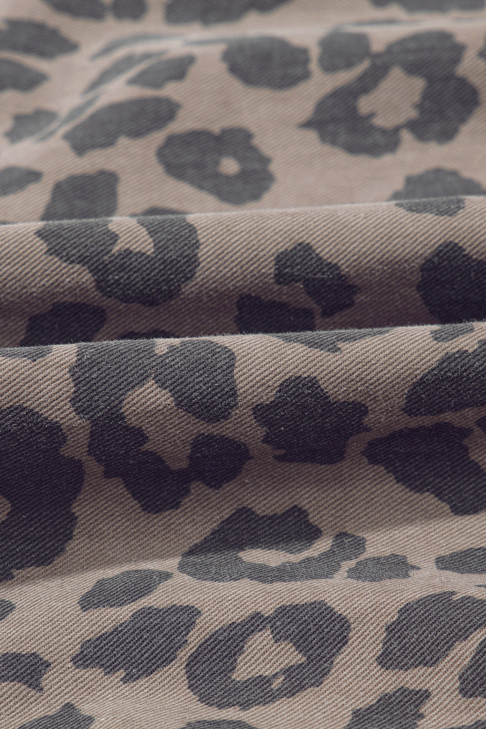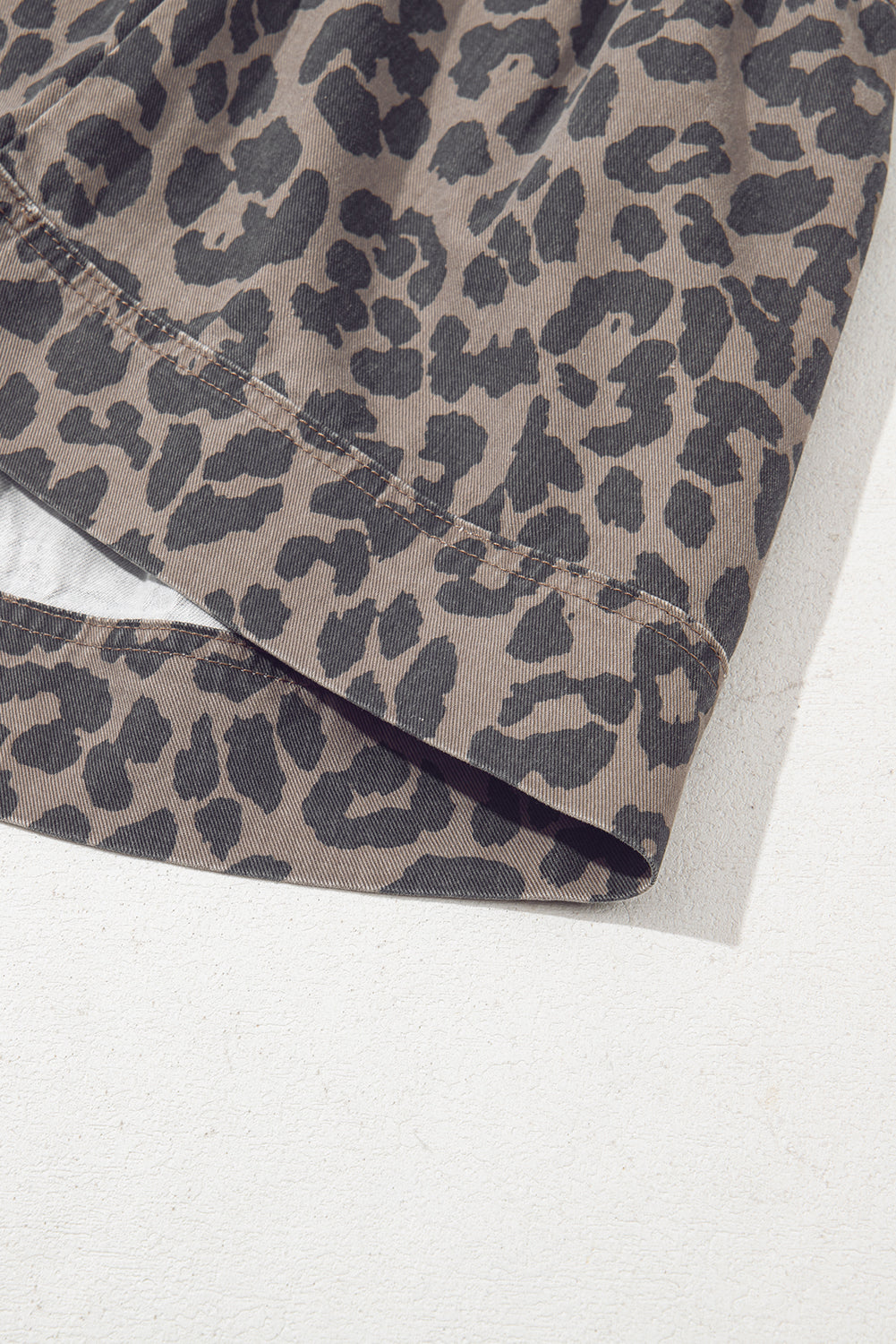 Brown Leopard Print Short Sleeve Flared Denim Mini Dress