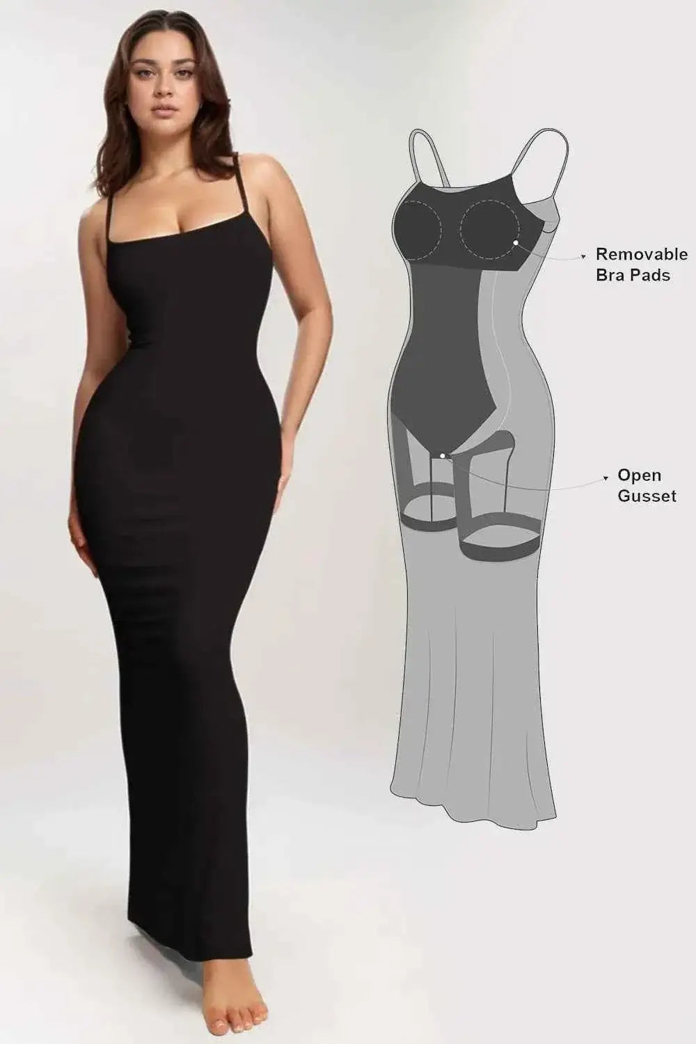 Discover the ultimate fusion of style and comfort with our Built-In Shapewear Sleeveless Maxi Dress. This basic style dress seamlessly combines fashionable design with practical functionality, making it the perfect addition to your wardrobe. Made from a premium blend of 92% modal and 8% spandex, the dress is highly stretchy to ensure a flattering fit for all body types. The opaque exterior is complemented by a soft, lined interior crafted from 62% polyamide and 38% elastane, providing both comfort and coverage.