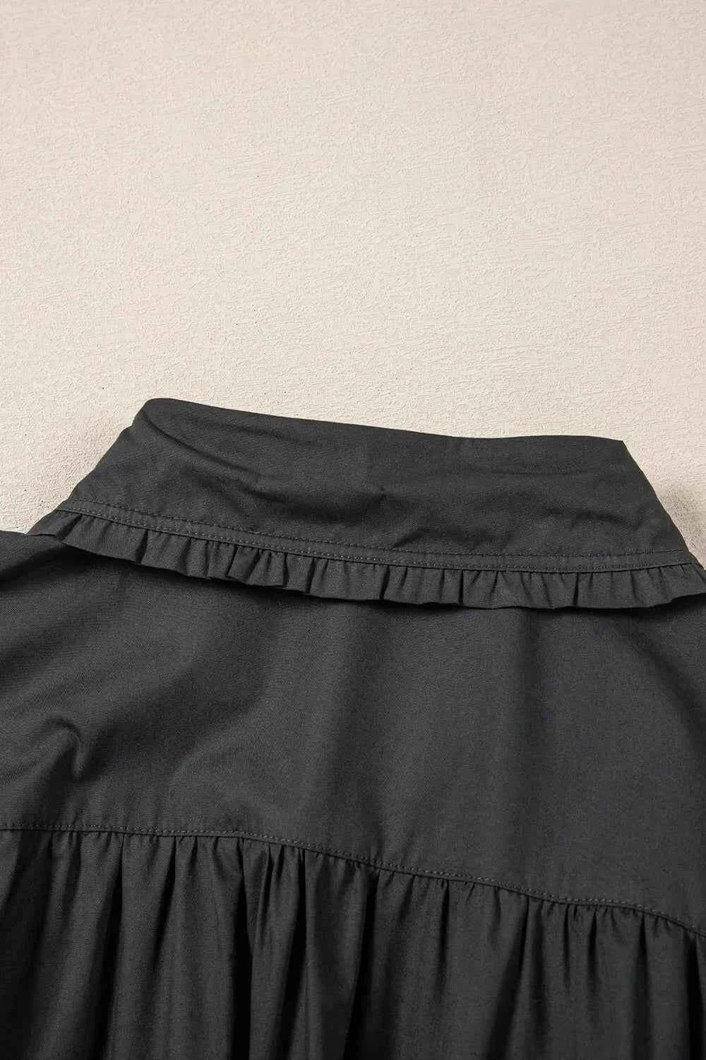 Button Down Puff Sleeve Dress with Ruffle Hem