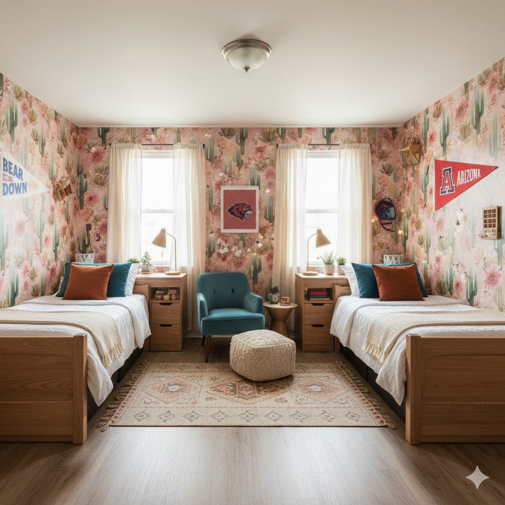 Towering watercolor saguaros stand tall among desert succulents, their forms softened by bursts of pink cactus flowers in full bloom. The sandy blush background gives the design a sunlit, romantic feel while still celebrating the rugged resilience of desert plants. Ideal for nurseries, garden rooms, or eclectic living spaces, this wallpaper captures the beauty of the Southwest in spring. It complements terracotta floors, rattan accents, and earthy clay pottery, bringing a fresh, whimsical desert vibe indoors.