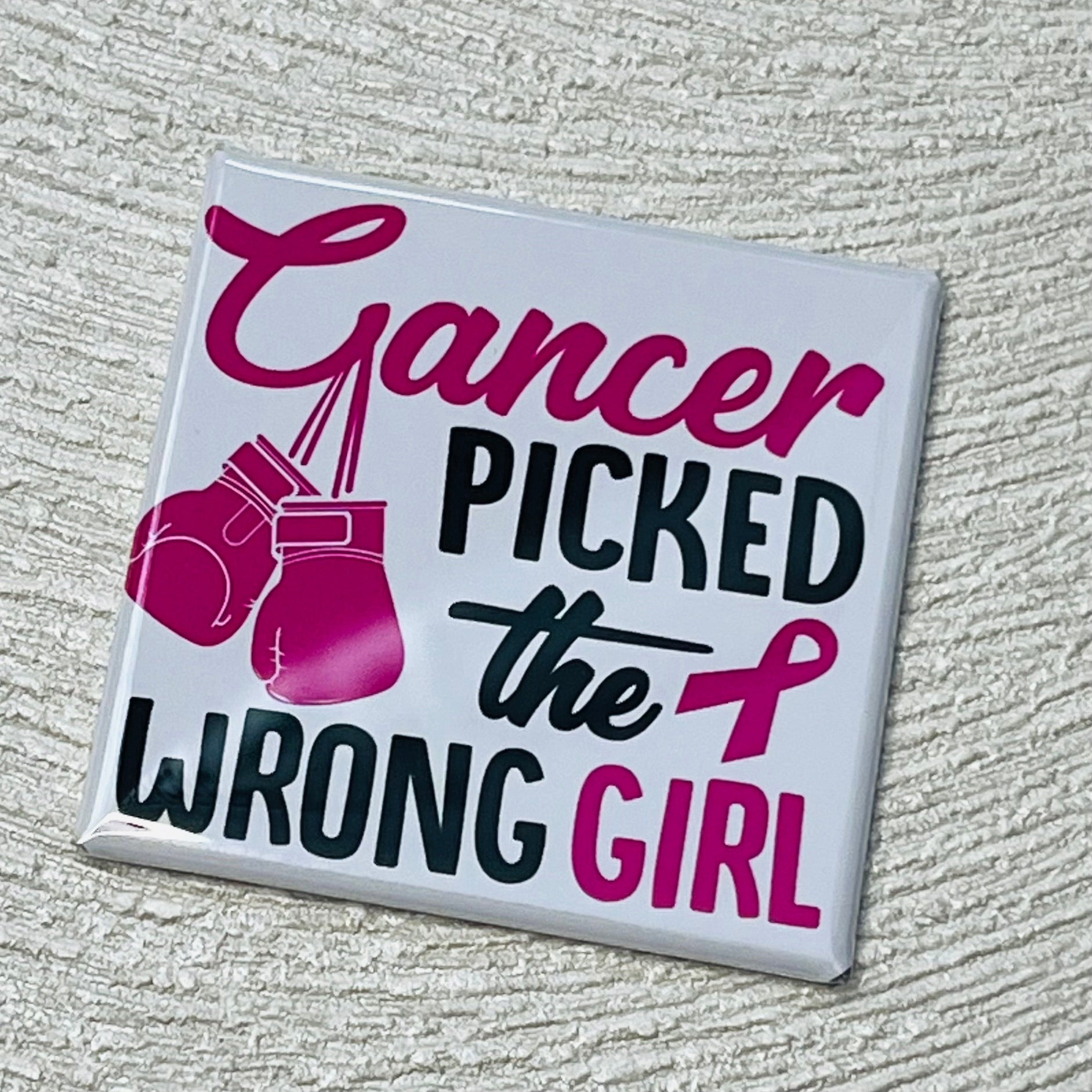 CANCER PICKED THE WRONG GIRL - BREAST CANCER AWARENESS MAGNET