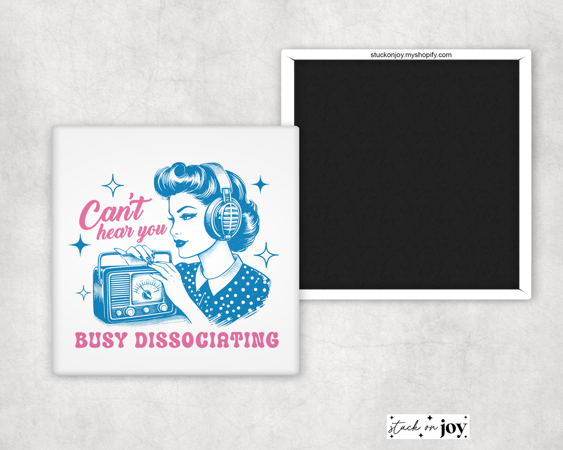 CAN'T HEAR YOU - BUSY DISASSOCIATING FUNNY 2"x2" MAGNET