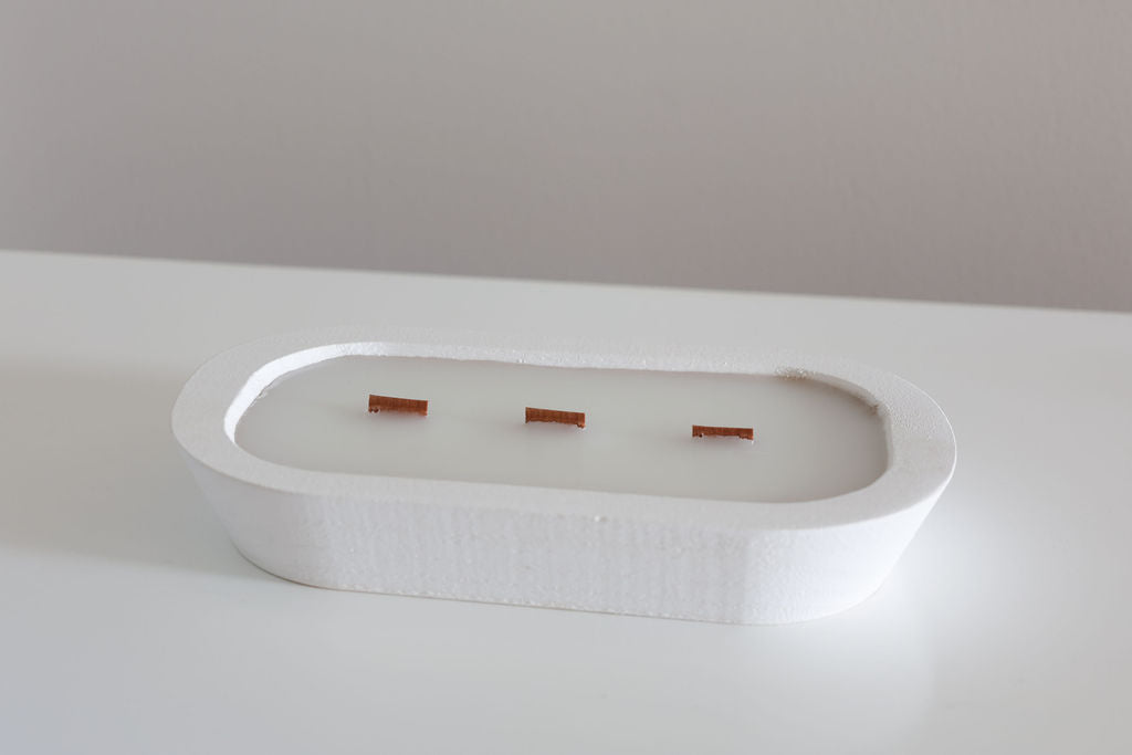 Small Wood Dough Bowl with Wooden Wicks, White sku-51684636524757