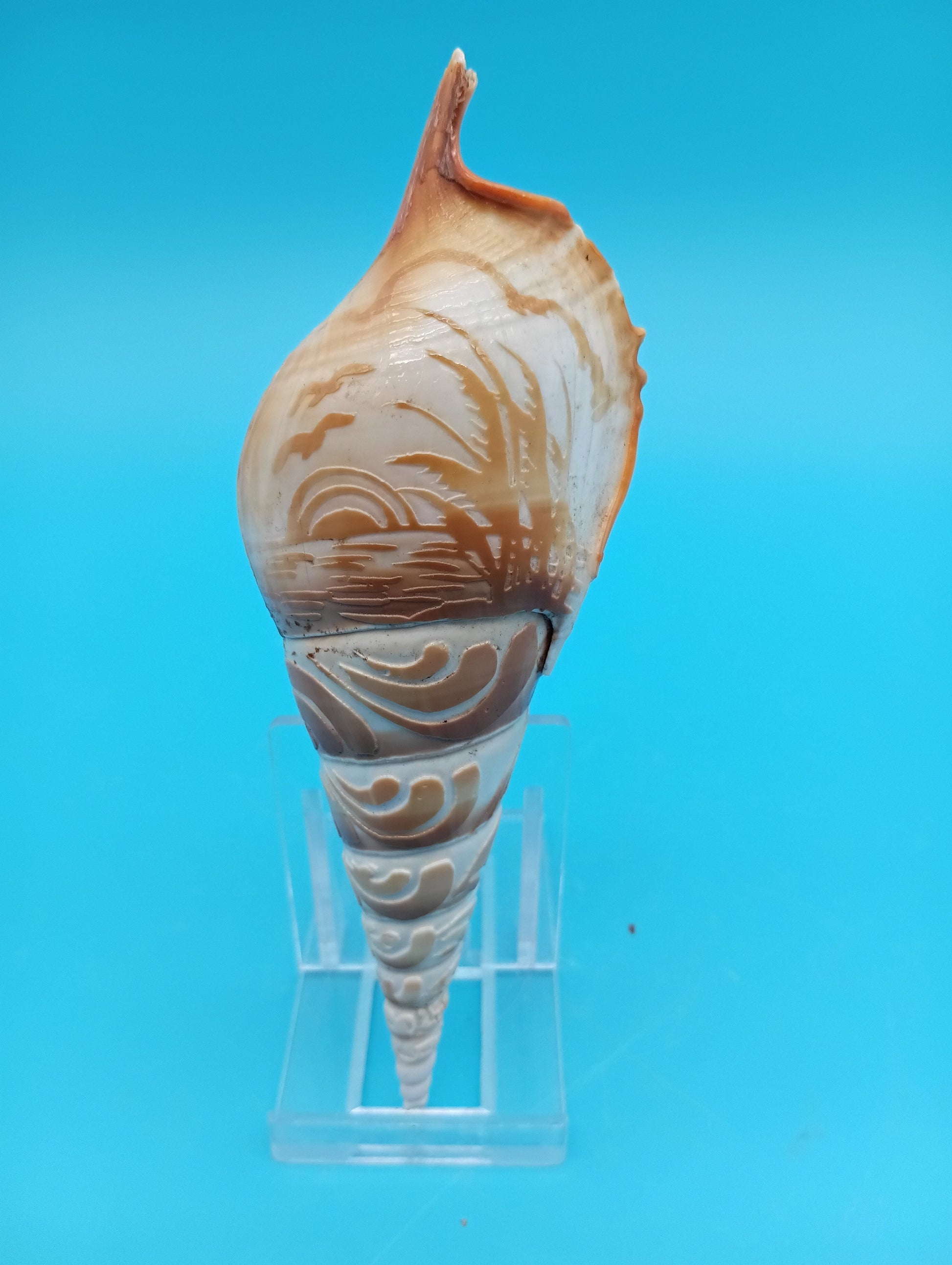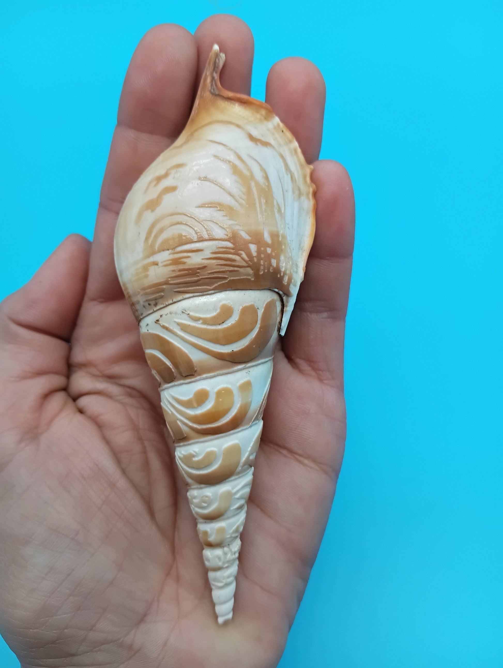 Each shell is one of a kind, with natural variations in carving details and coloration that ensure no two pieces are exactly alike. A timeless coastal accent, this carved Tibia shell is ideal for collectors, beach lovers, and nautical-inspired interiors.