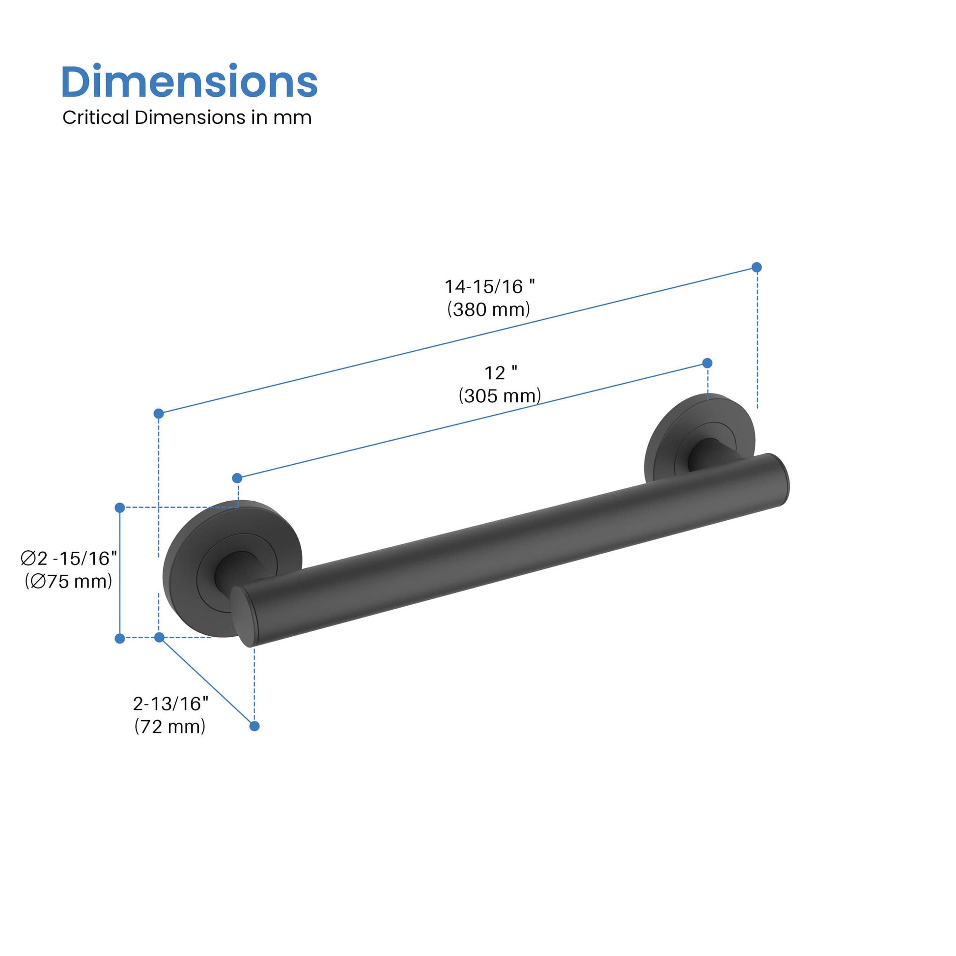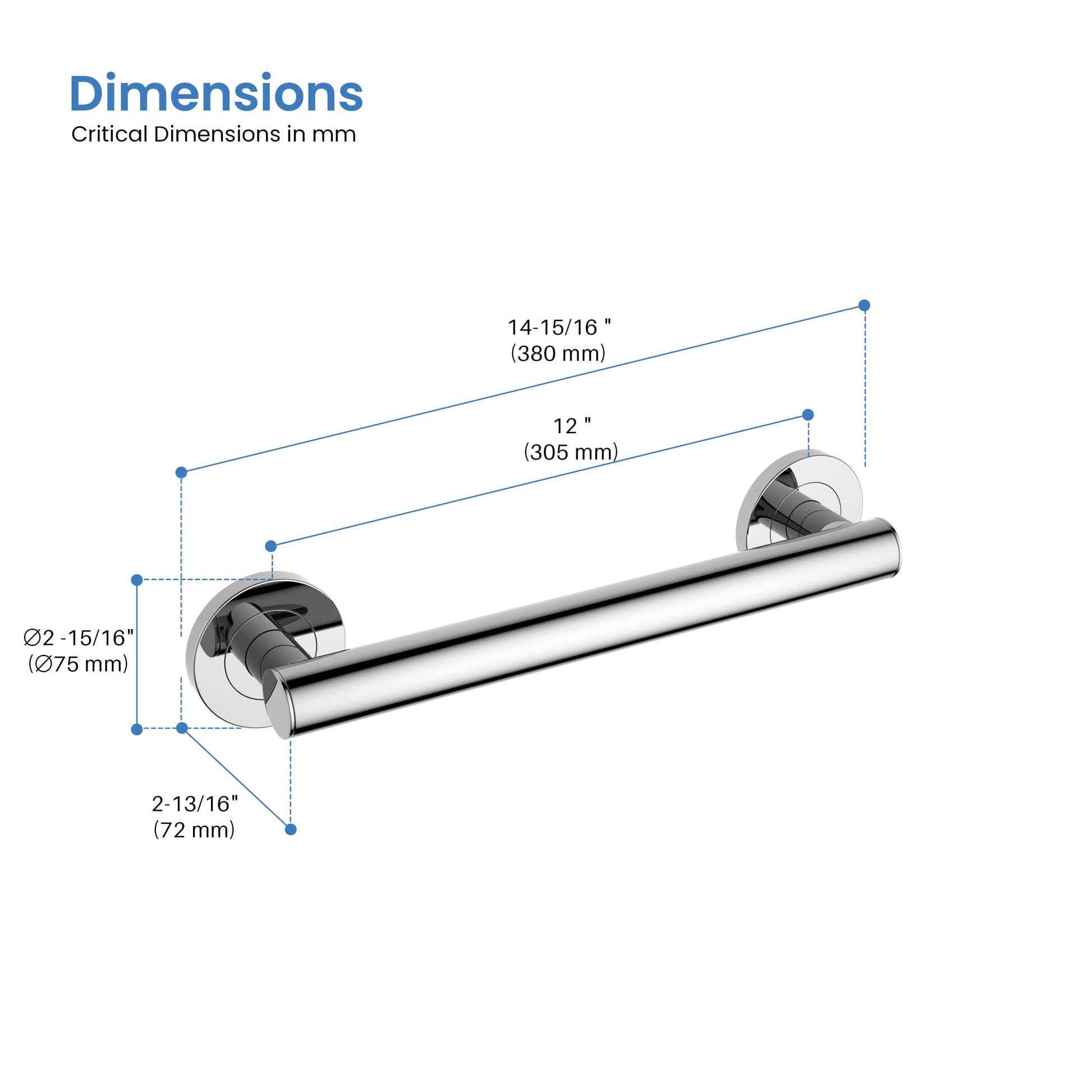 Casa 12" Stainless Steel Bathroom Safety Grab Bar