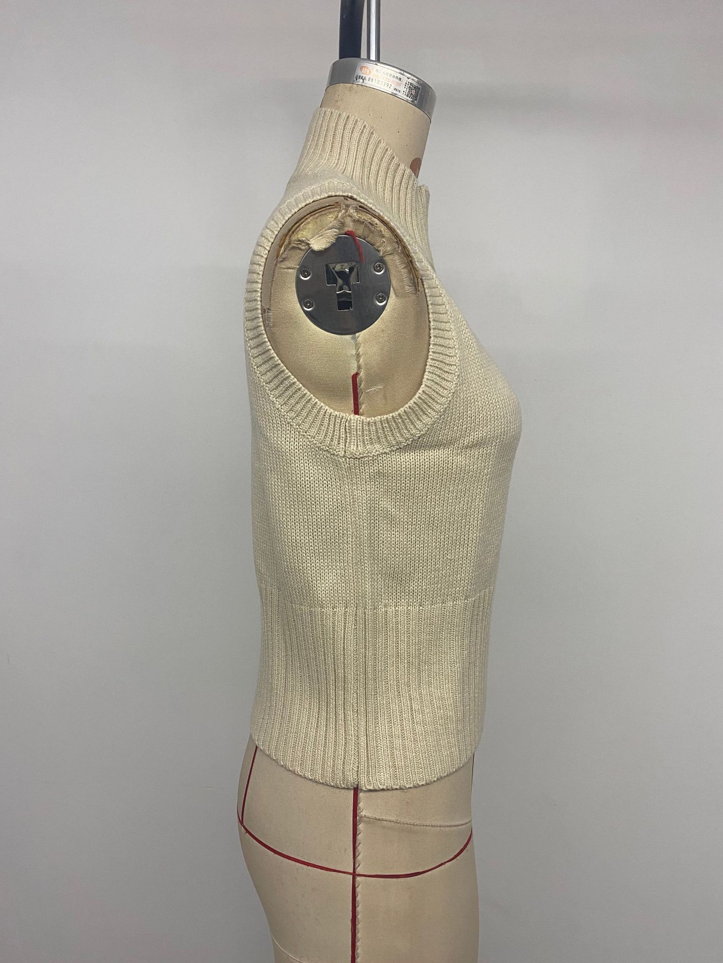 Casual Simple Zipper Turtleneck Solid Color Sleeveless Knitted Sweater Vest Women