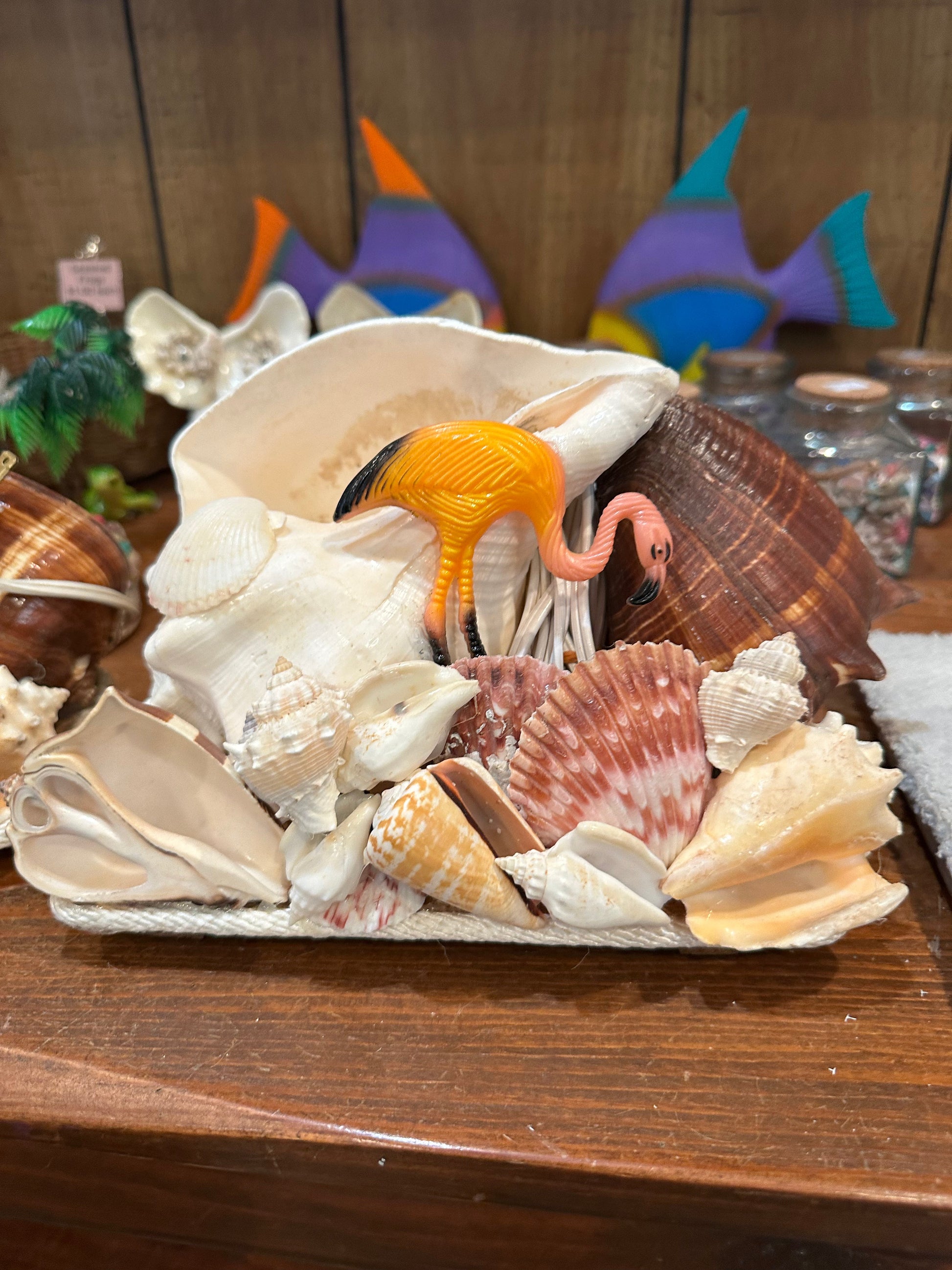 Blast from the past! These 1980's seashell novelty lights feature a large Chank Conch & assorted seashells. Choose from 4 accents- seahorse, Palm Tree, flamingo or crucifix. Light included. Each will vary.