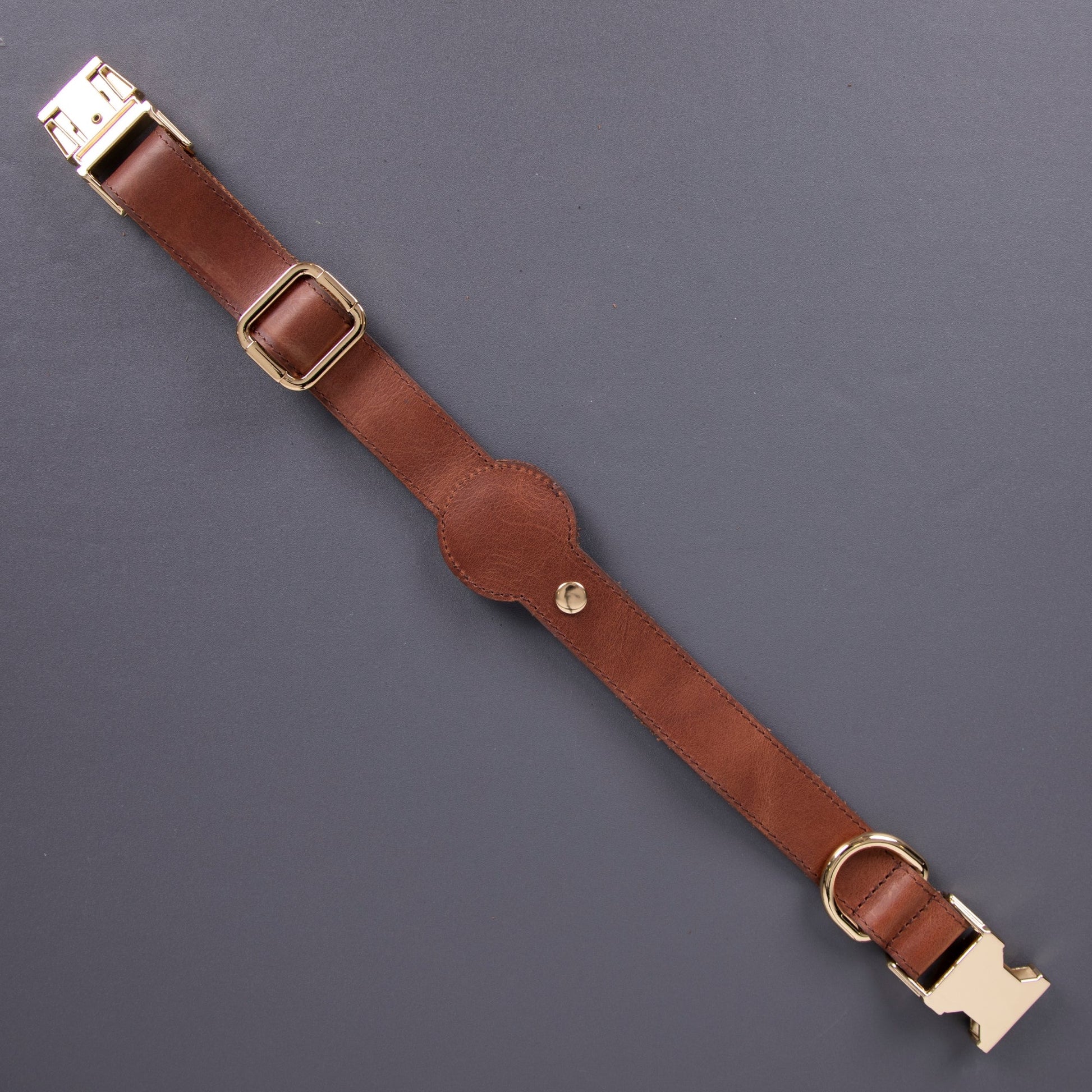 Premium Handmade Calfskin Leather Dog Collar with Apple AirTag Compatible Pocket, 19.7-İnches (50cm) Adjustable Size
