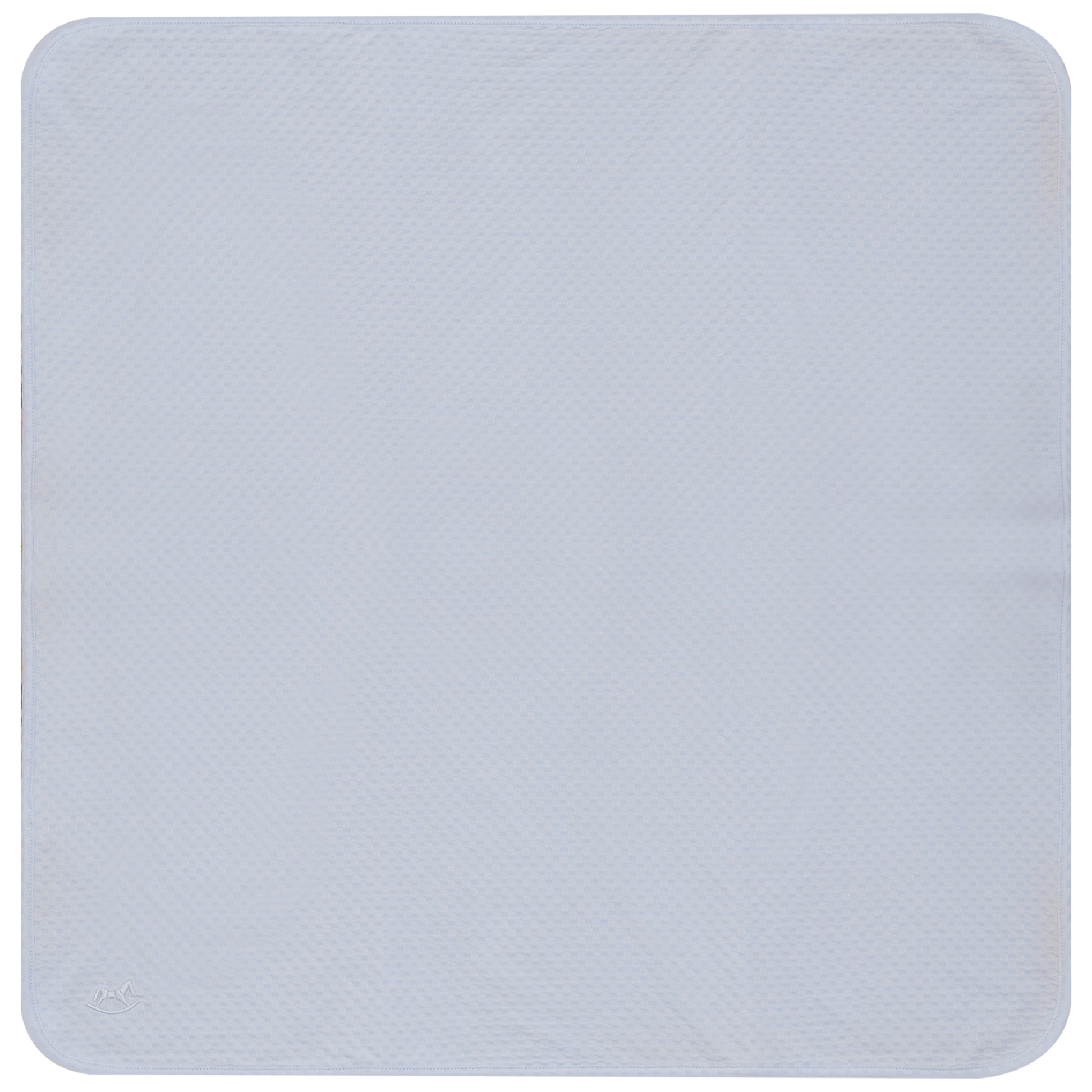 Baby boys checkered blanket with rocking horse at front corner. ֲ