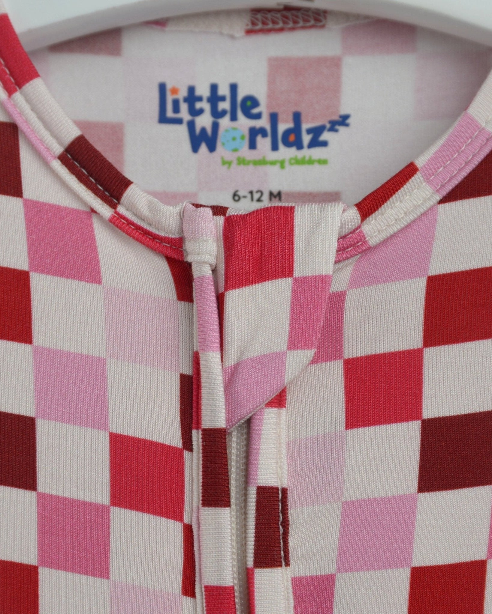 Stay stylish and cozy with our Pink Checkered onesie for babies, featuring a refreshing new color combination of red and pink. Perfect for lounging or sleeping, these PJs will keep you comfortable and fashionable. Upgrade your sleepwear collection today!