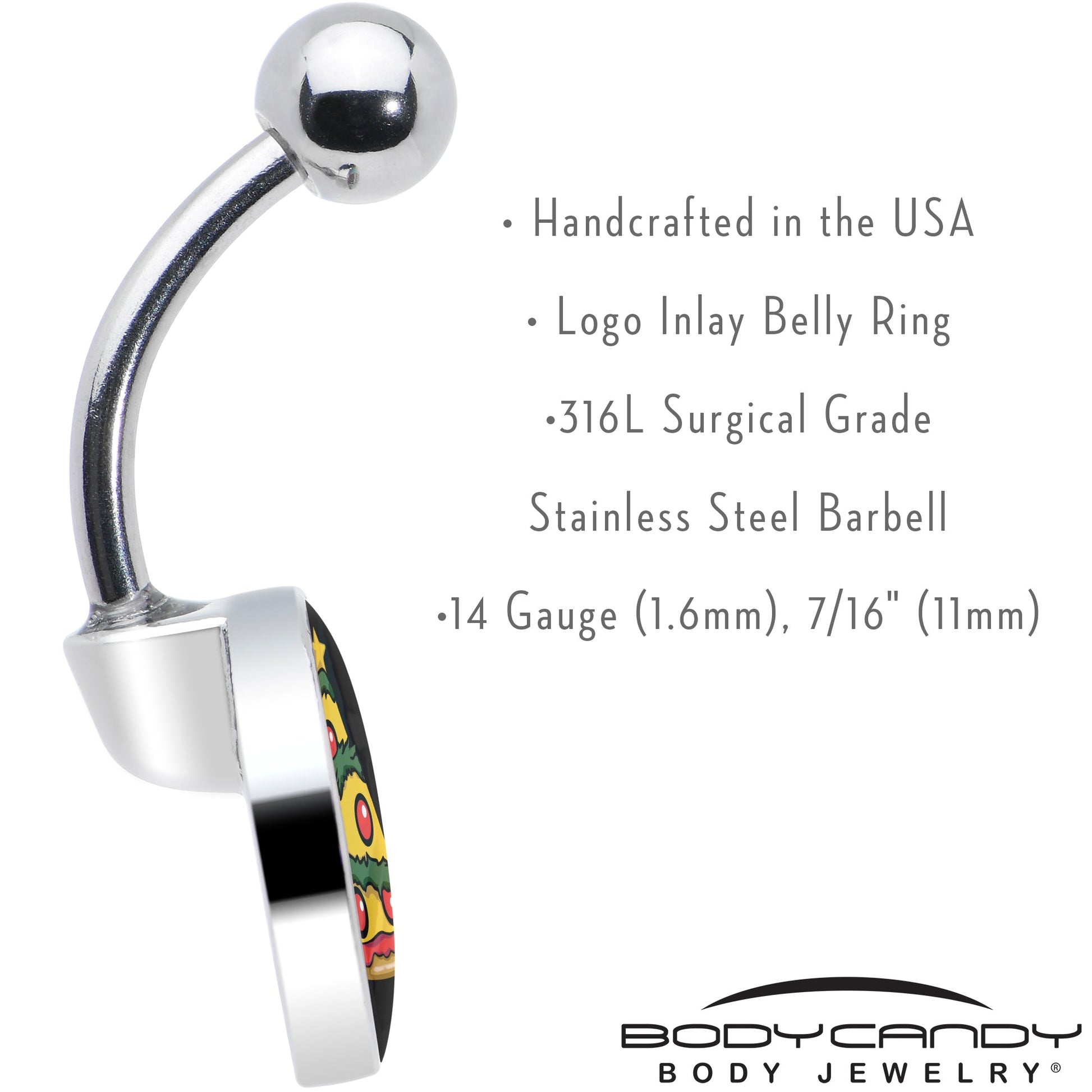 Show off your holiday cheer with the Christmas Holiday Pizza Tree Belly Ring! This festive piece features artist hand-drawn artwork, blending the quirky charm of a pizza slice shaped like a Christmas tree. Designed with care and precision, each belly ring is hand-assembled in the USA, ensuring a unique touch for your holiday look. Made with hypoallergenic materials, this 14 gauge belly button ring is perfect for sensitive skin, offering comfort and durability. Whether you're trimming the tree or grabbing a slice, this playful accessory is a must-have for your seasonal wardrobe!