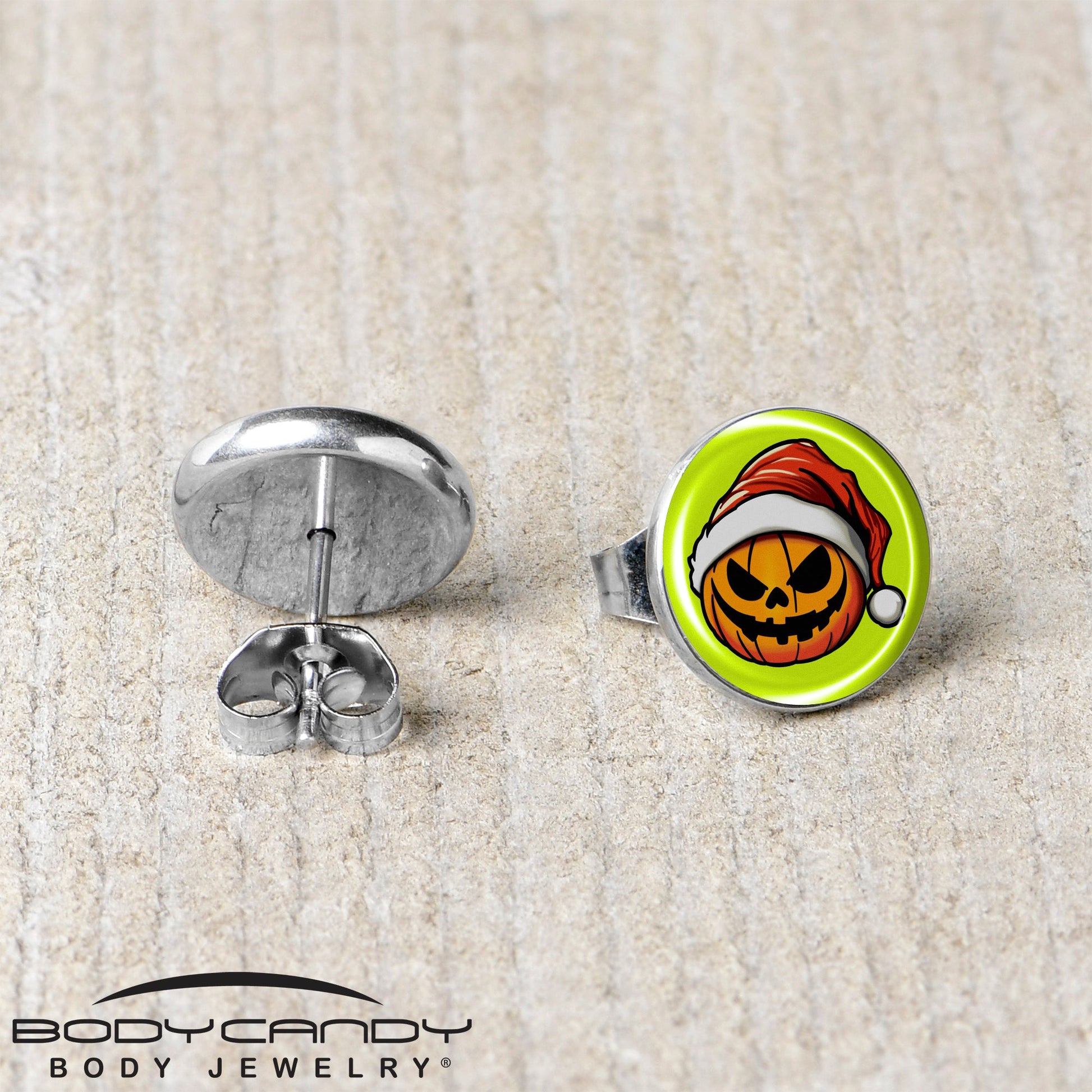 Celebrate the holidays with a unique twist! These earrings for pierced lobes feature adorable pumpkins donning Santa hats, blending festive cheer with fall vibes. Designed with artist hand-drawn artwork, these earrings showcase intricate detailing that stands out. Crafted from high-quality, hypoallergenic materials, itü??s perfect for sensitive skin and comfortable for everyday wear. Each piece is hand-assembled in the USA, ensuring a touch of artisanal craftsmanship. Add these playful and stylish pierced earrings to your collection and bring a little holiday magic to your look!