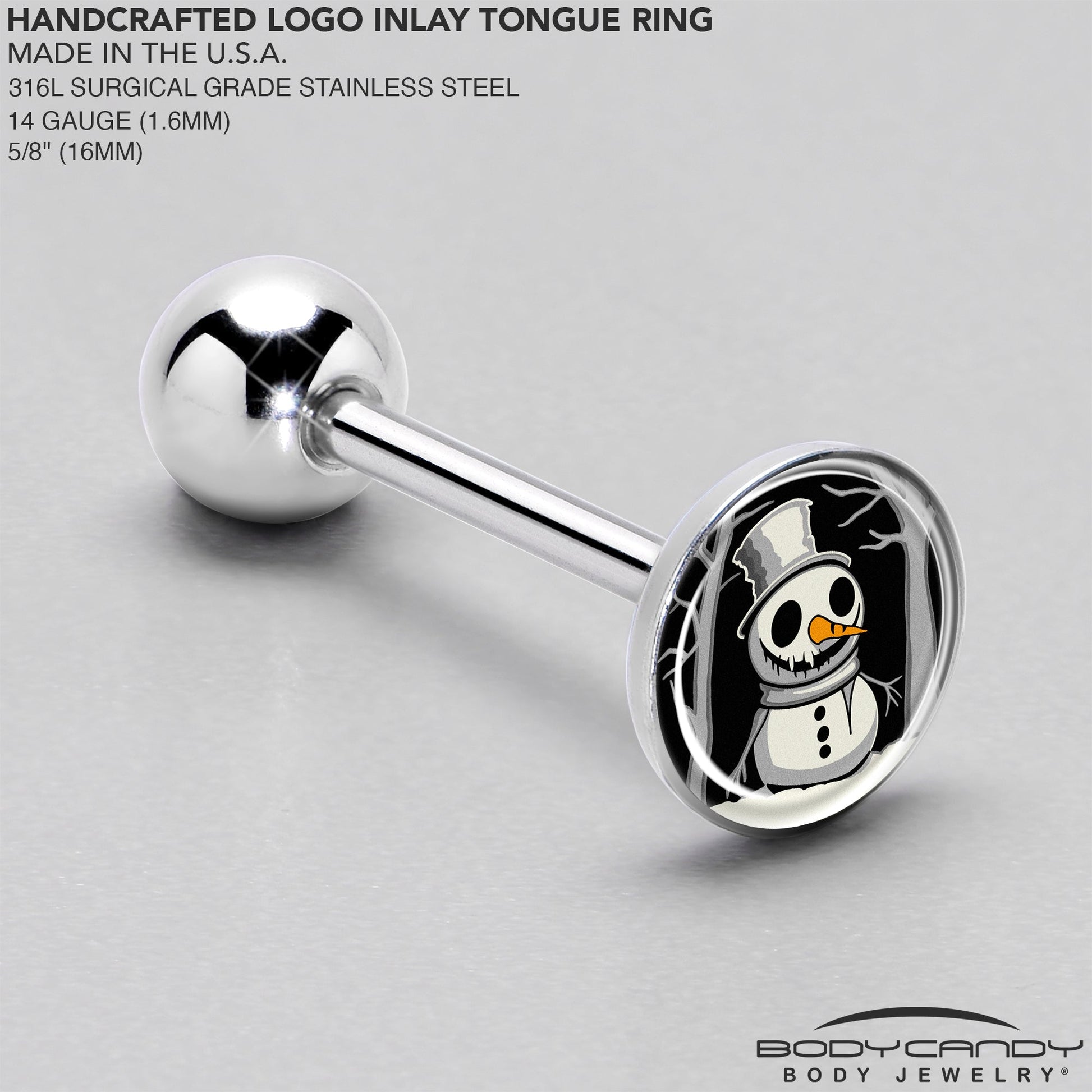 Christmas Holiday Spooky Snowman Barbell Tongue Ring by Onyx O