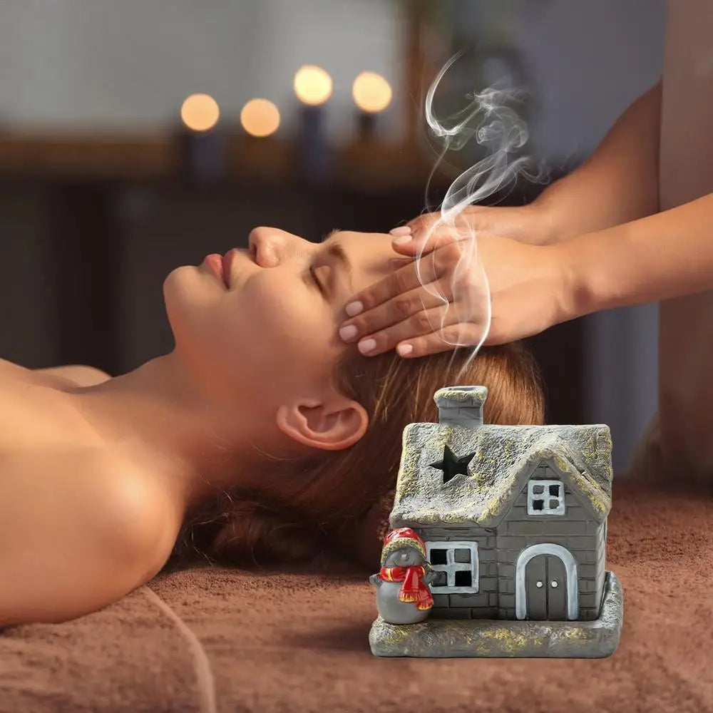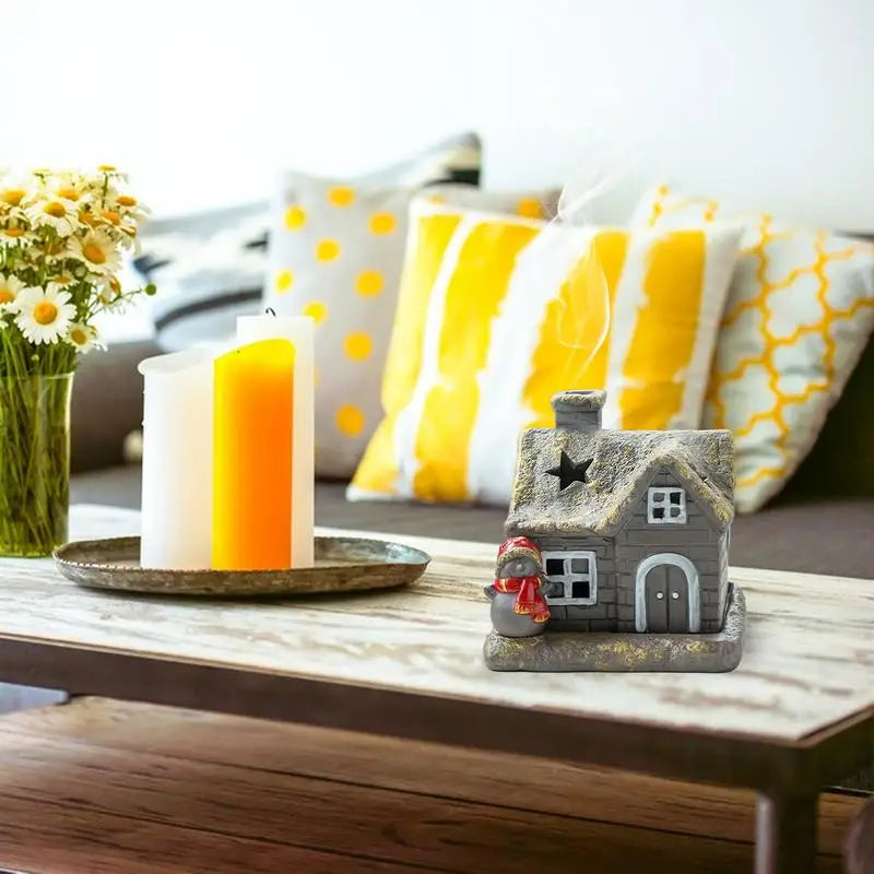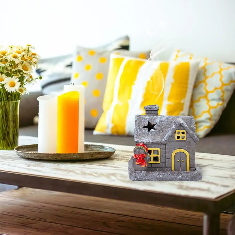 Christmas House Incense Burner - Ceramic Aroma Cone Burner with Chimney Design and Ash Catcher for Table Décor