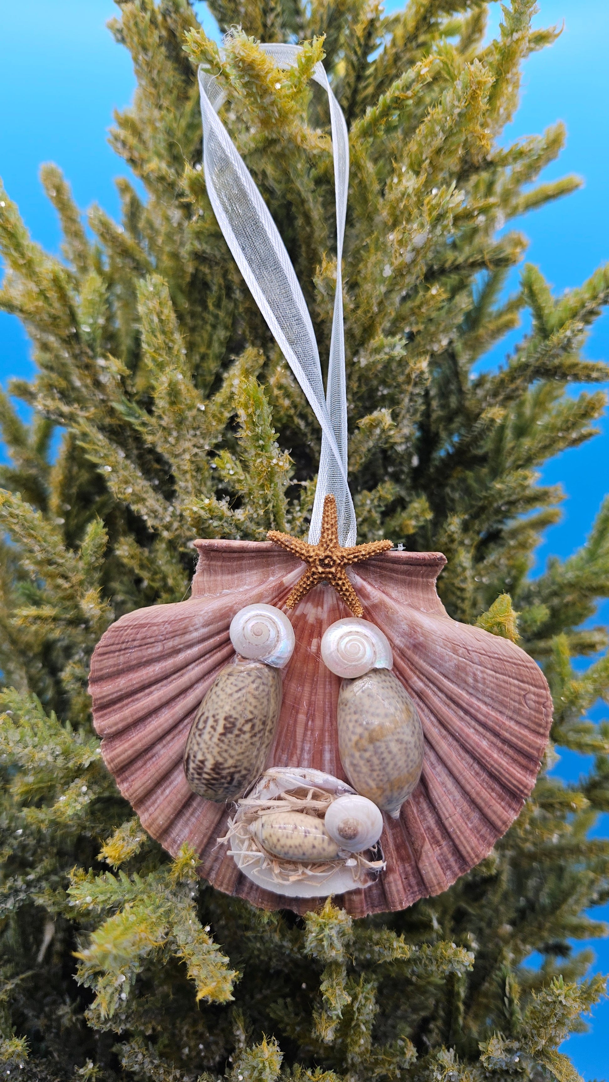 Celebrate Christmas with coastal charm! Whether you pick the turtle, kitty, or shell tree, these handmade scallop shell ornaments bring a splash of seaside magic to your holiday celebrations.