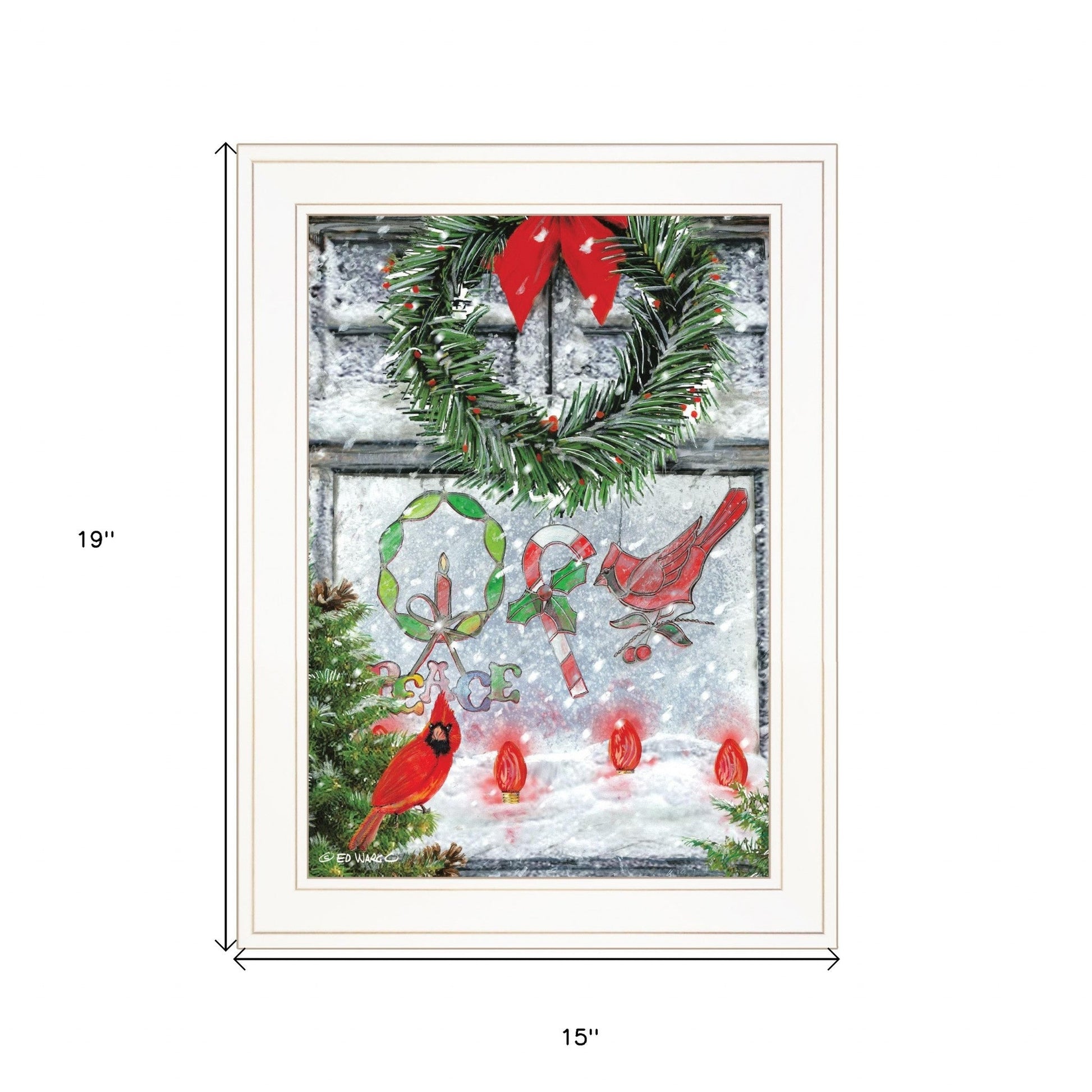 Add some Christmas cheer to your space with this christmas peace 1 white framed print wall art. This unique and novel shaped art will bring some dimension and artistic design to your wall. This print is a visual artistic expression that allows you to decorate your space in style. Reproduced for you on paper, this hanging decorative accent will be a trendy and fashionable way to dress your walls. Adding this hanging wall art to your space to make your room feel more finished and attractive. Instantly liven up your space with this art that brings color and dimension to your walls. 19 inches H x 15 inches W x 1 inches D
