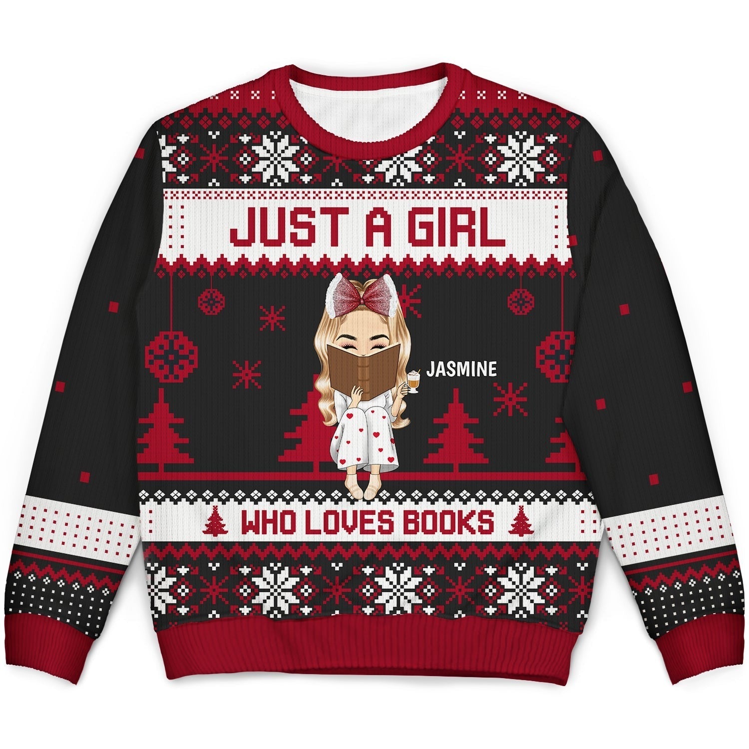 Christmas Reading Just A Girl Who Loves Books - Gift For Book Lovers - Personalized Unisex Ugly Sweater