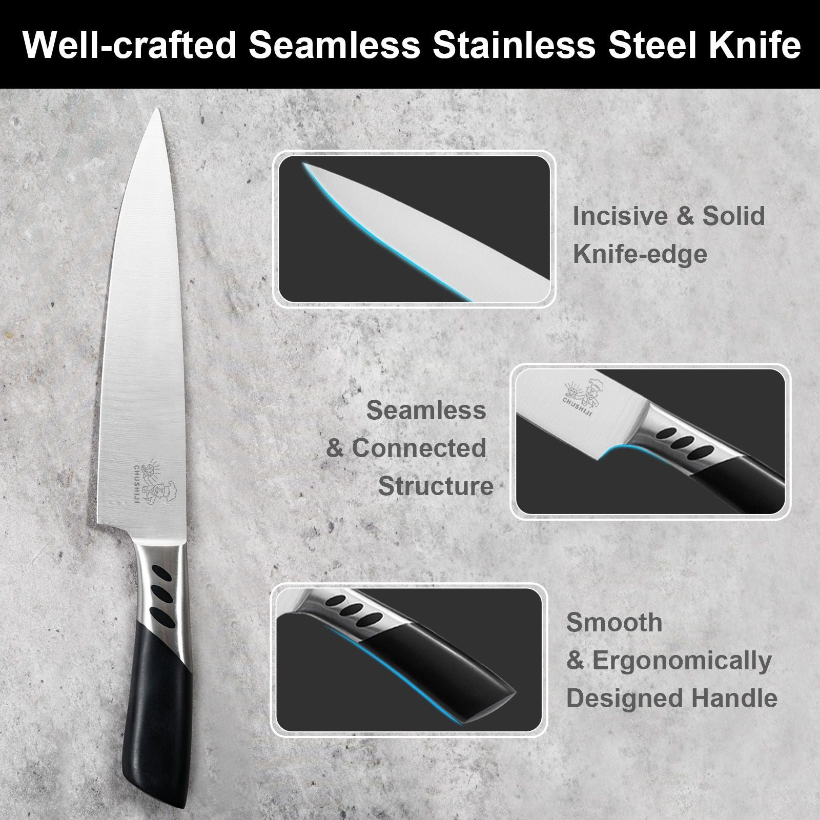 [ULTRA-SHARP and DUARABLE]Professional satin-polished and high-quality Stainless Steel blades are precision cut and finely ground for long-term use and razor sharp knife sets for kitchen.The integrated design of the blade and the bolster makes the ergonomically designed handle not easy to break or fall.