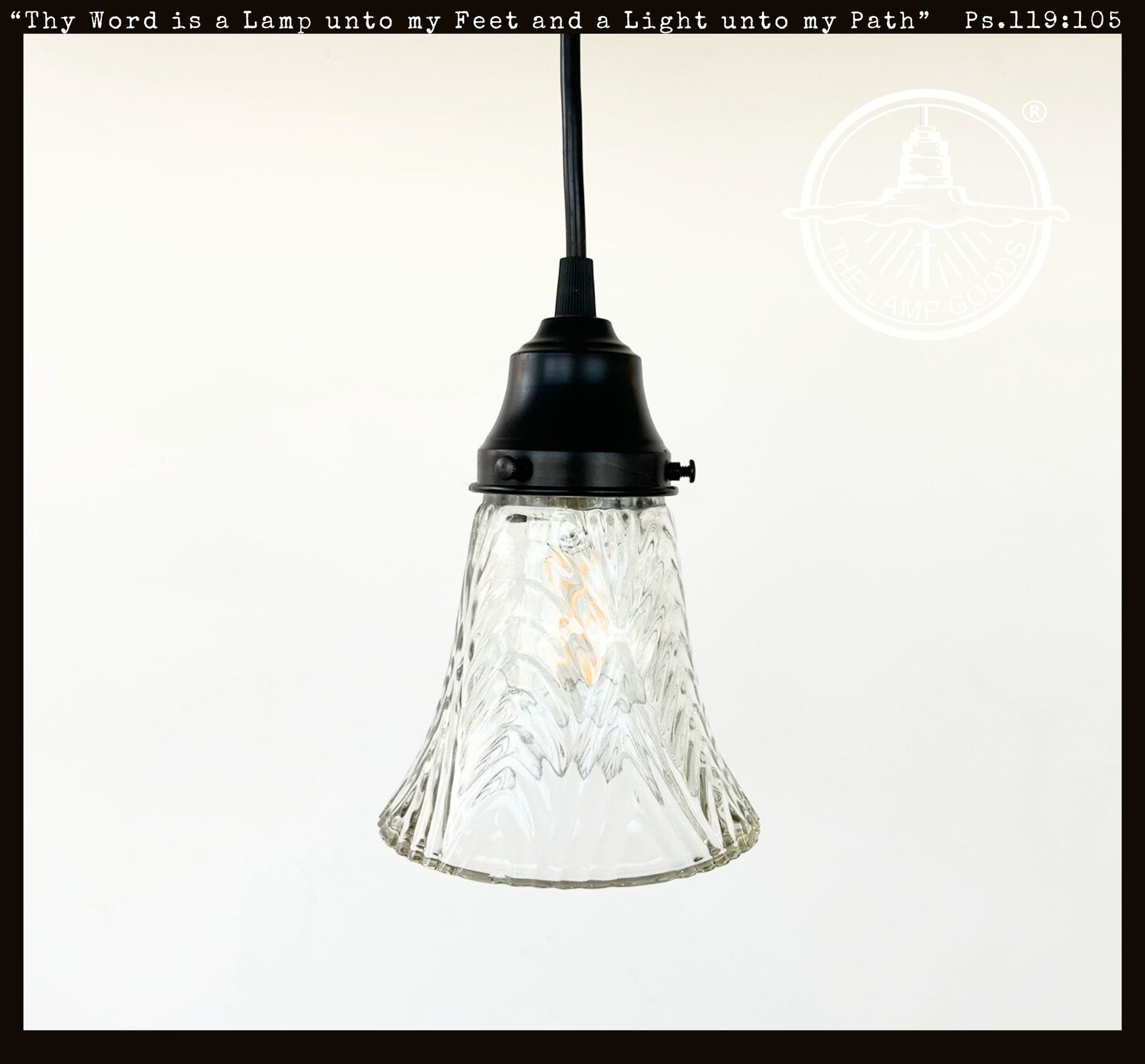 5" wide Clear Chevron Ribbed Vintage Pendant Light