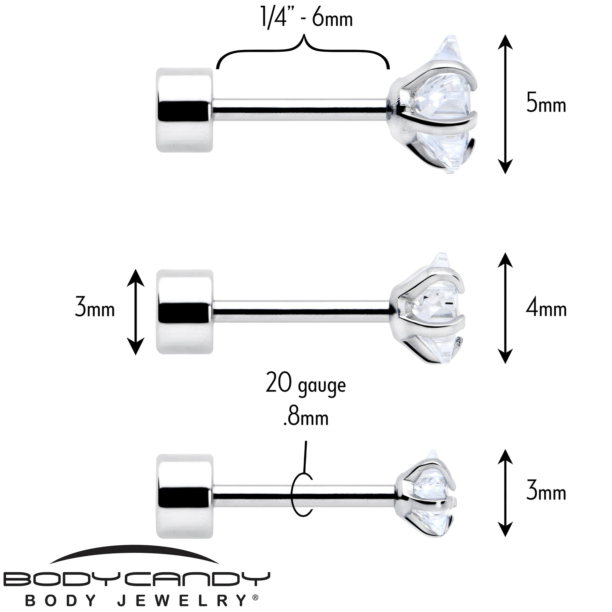 3mm 4mm and 5mm CZ Trio Earring 3 Pack of Flat Back Stud Earrings