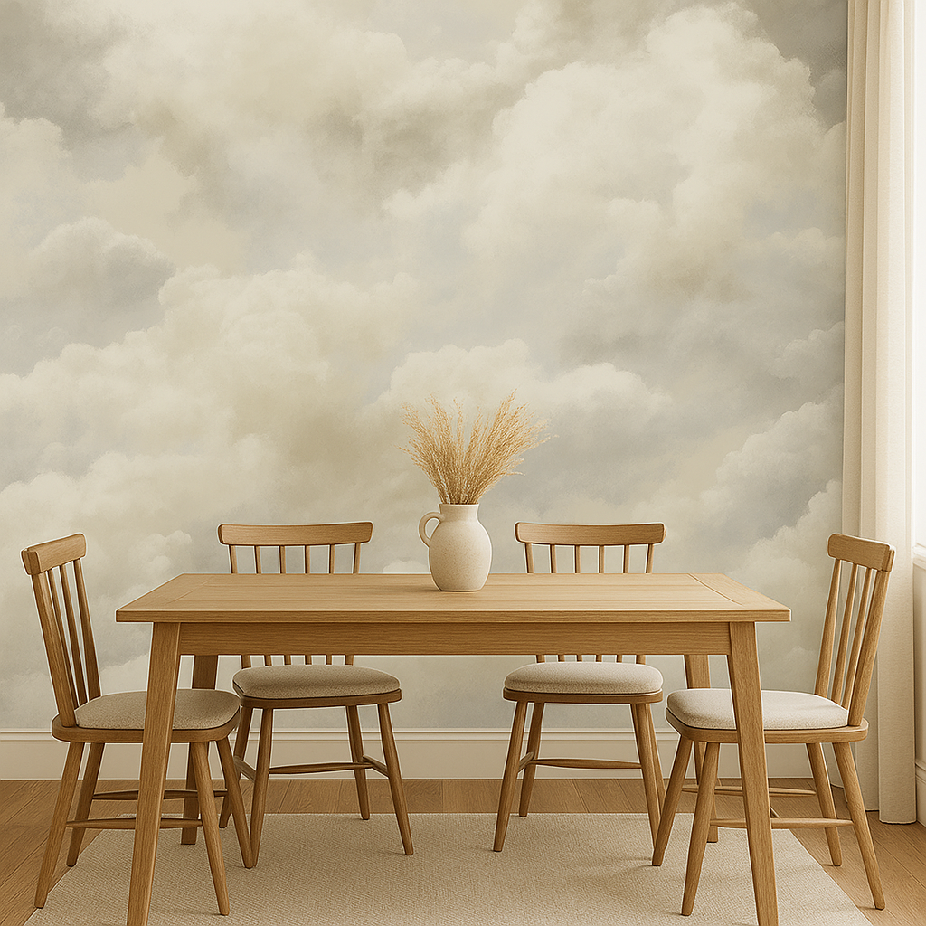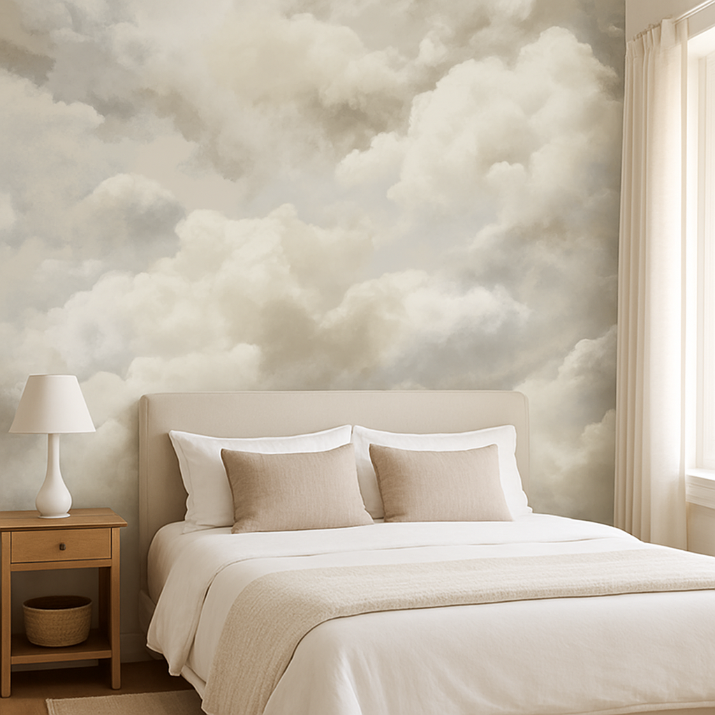 Soft, weightless, and endlessly peaceful, Cloudbound floats across your wall like a dream you never want to wake from. Shades of cream, ivory, and quiet gray drift and swirl, forming pillowy cumulus shapes in a seamless cloudscape. Ideal for nurseries, spa-like bathrooms, or serene bedrooms, it’s a neutral that feels anything but boring—calming yet cinematic, minimal yet full of texture. Breathe it in and let the world slow down.
