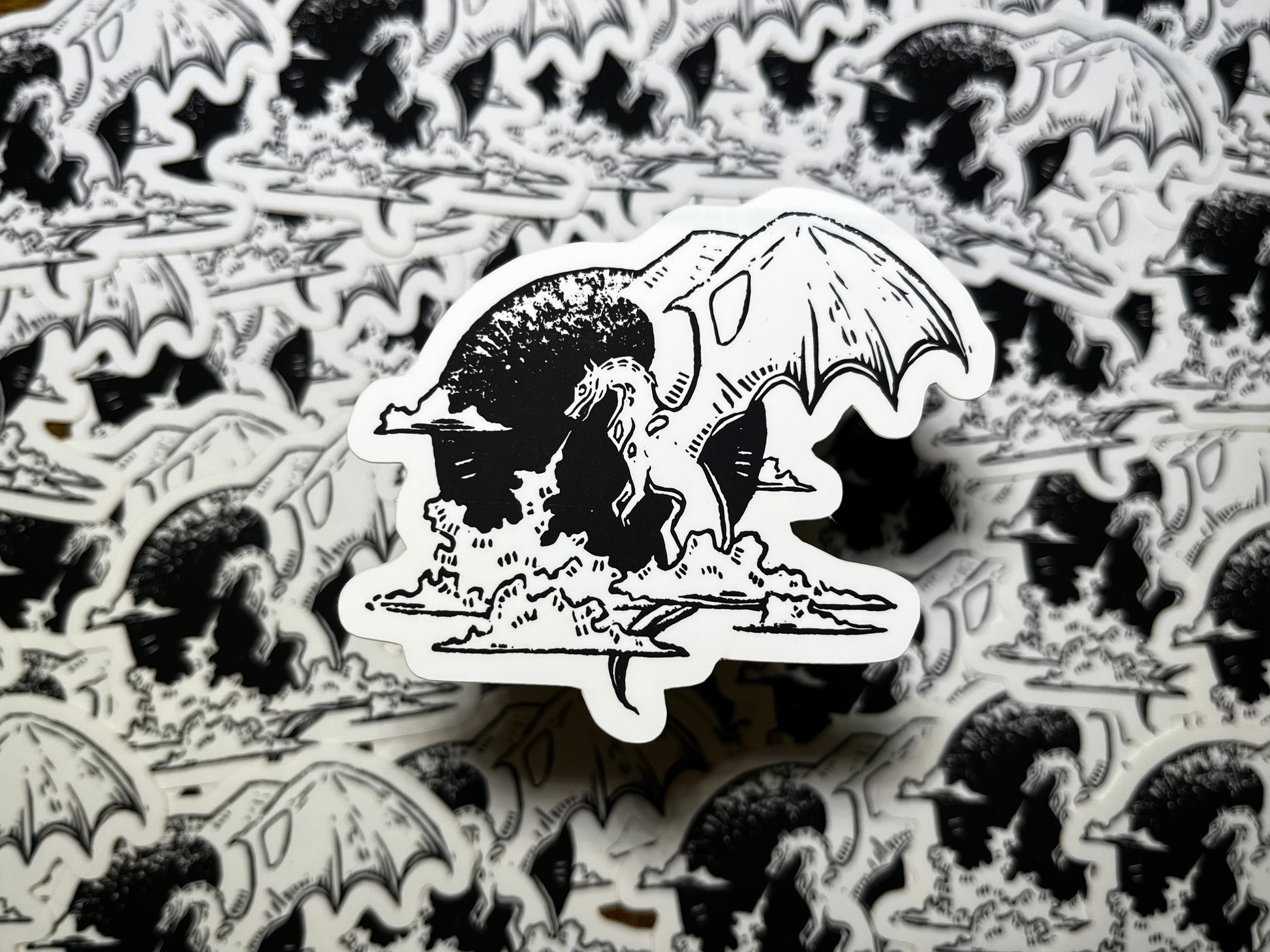 Vinyl stickers are made by using a high-quality scan of the original block-printed design.