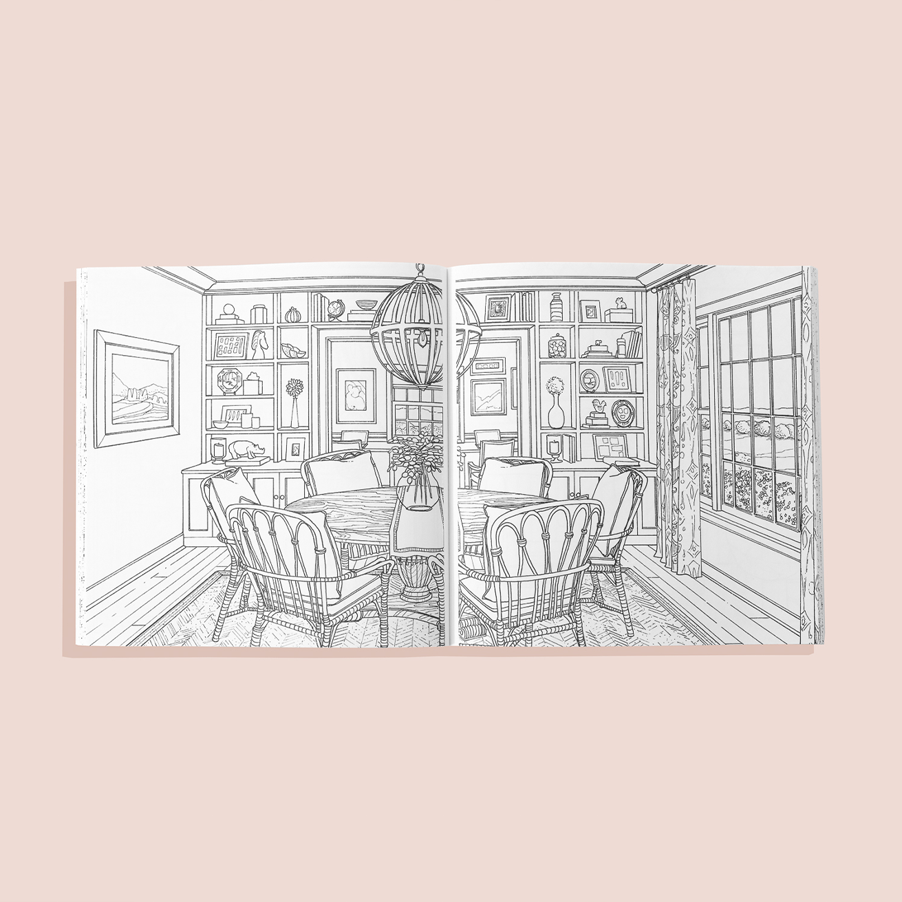 Illustrated by Joan Borawski, this book features intricate design details like built-in bookcases, patterned pillows, and ornate rugs that you can bring to life with your own color schemes. Each page is printed on white premium paper and offers countless opportunities to experiment with different looks without having to repaint a room or buy new furniture.