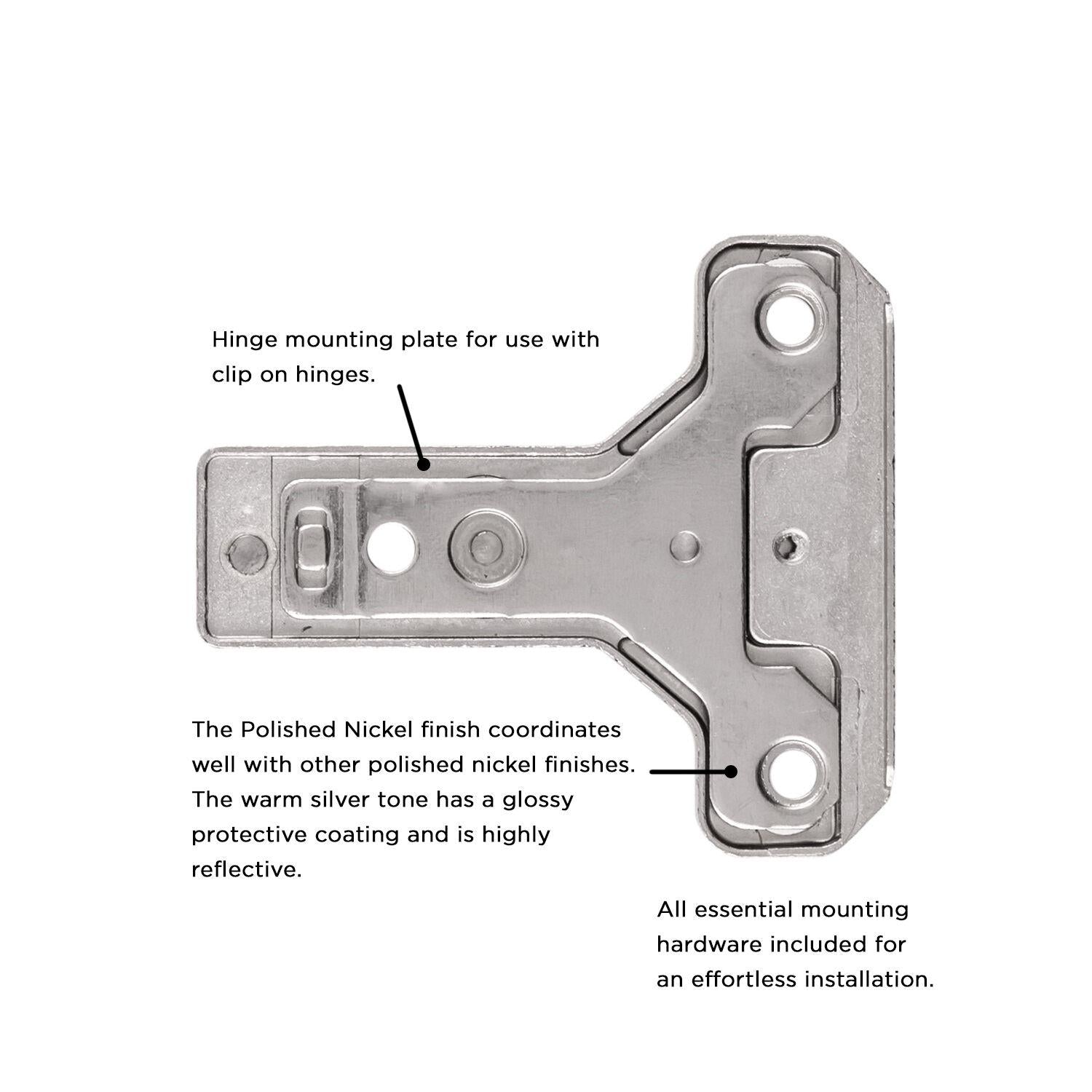 The Polished Nickel finish coordinates well with other polished nickel finishes. The warm silver tone has a glossy protective coating and is highly reflective.