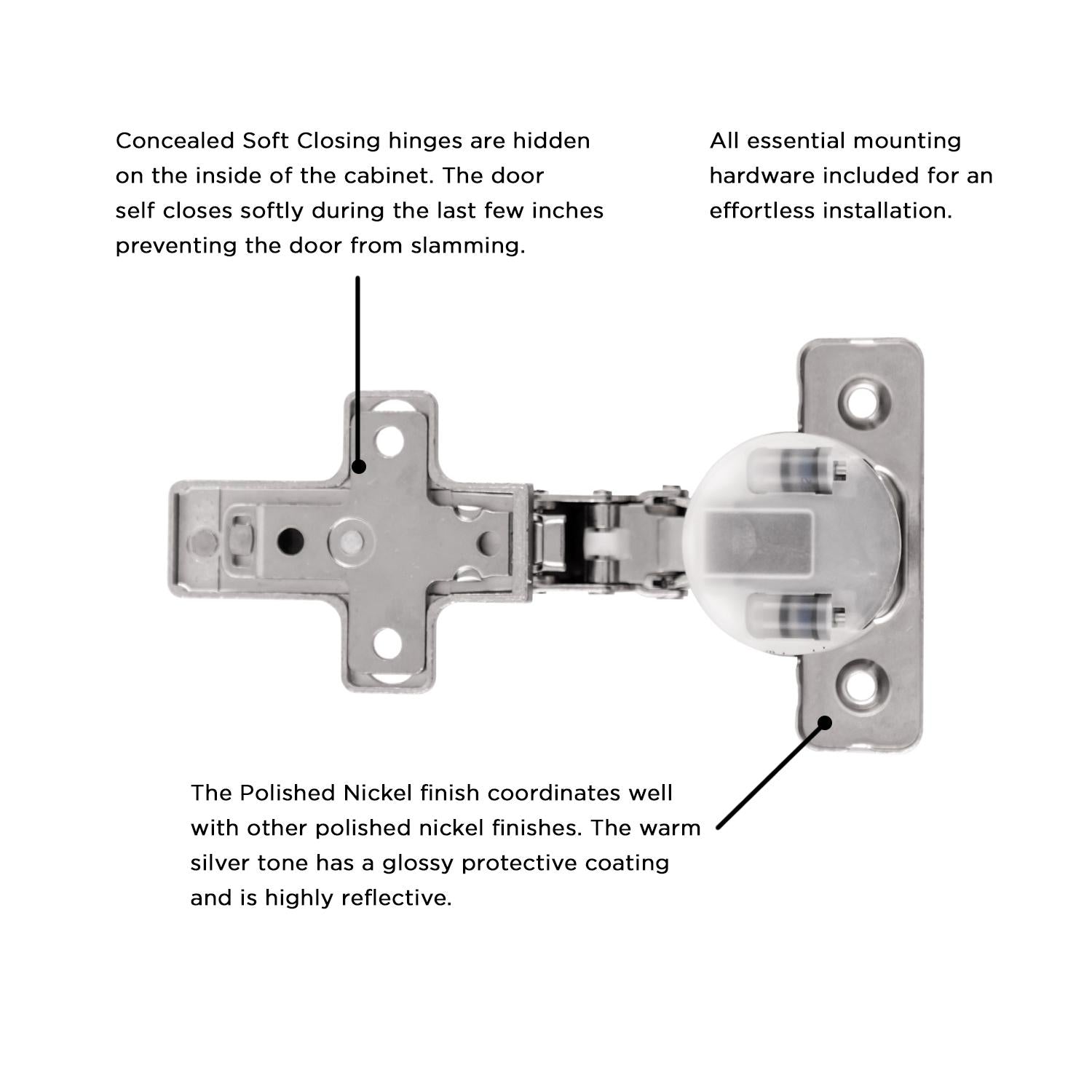 The Polished Nickel finish coordinates well with other polished nickel finishes. The warm silver tone has a glossy protective coating and is highly reflective.