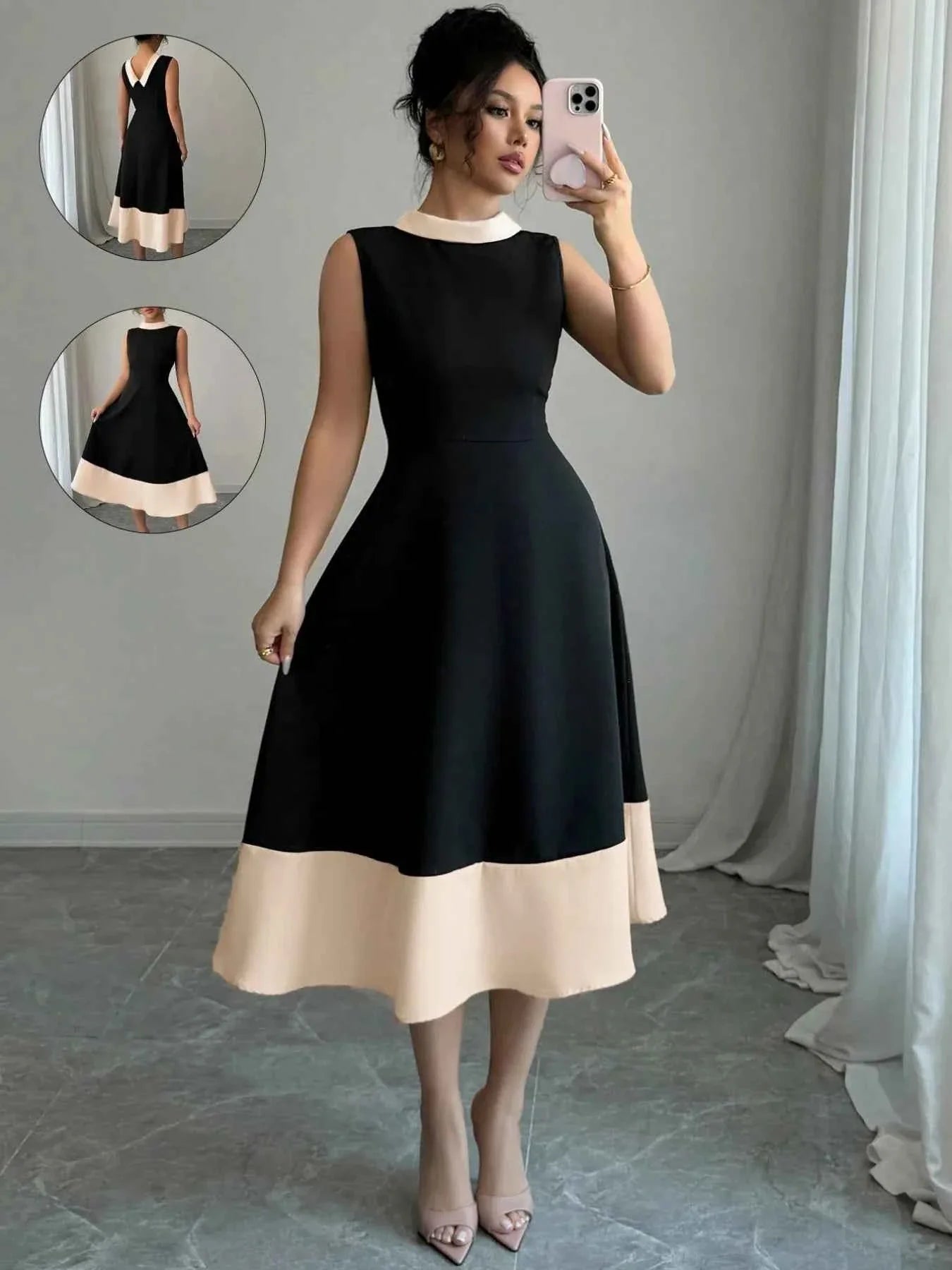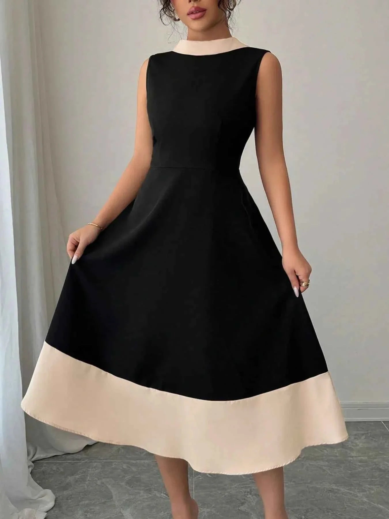 Contrast Trim Sleeveless Midi Dress