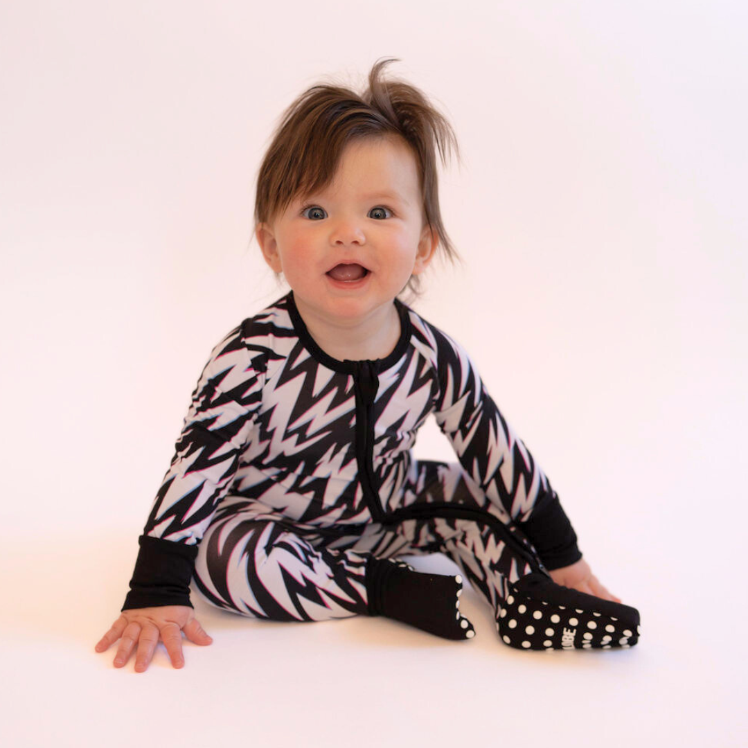 Get ready for some playful cuddles with our Convertible Zippy! Made from ultra-soft bamboo, this one piece offers 2-way zippers for easy diaper changes, fold-over footies with grips for your curious crawler, and fold-over mittens in select sizes to keep tiny hands warm and sharp newborn nails away from delicate faces. Versatile, comfy, and oh-so-cute! And did we mention it's super soft? You'll love snuggling up with your little one in this playful and practical outfit.