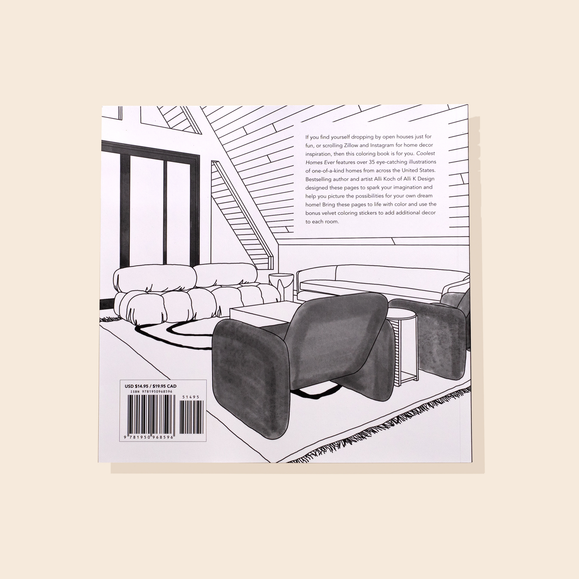 This one-of-a-kind coloring book by bestselling author and artist Alli Koch features eye-catching designs of some of today’s coolest and trendiest homes. If you daydream about living off the grid in a cabin or A-frame; hitting the road in an RV or vintage airstream; or building the perfect vacation home by the beach or in the desert, then this book will spark your imagination and help you picture the possibilities with its illustrations of unique home exteriors and interiors. As you color each page, imagine that you’re scrolling through some of Zillow’s most unique listings and bring them to life with colors you love. Plus, the book includes a full page of velvet stickers that you can use to decorate your artwork as well!