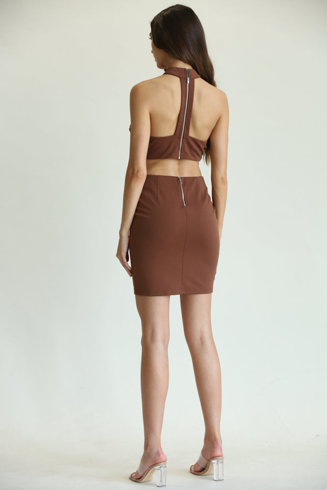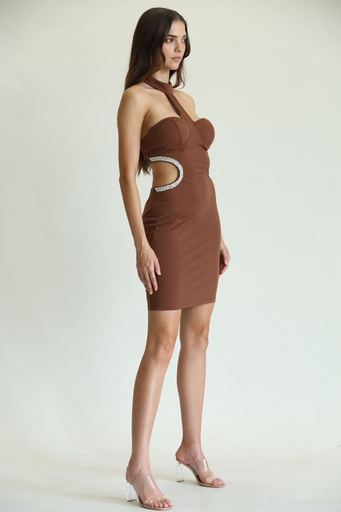 - CUTOUT WAIST WITH CHEVRON RHINESTONE TRIM