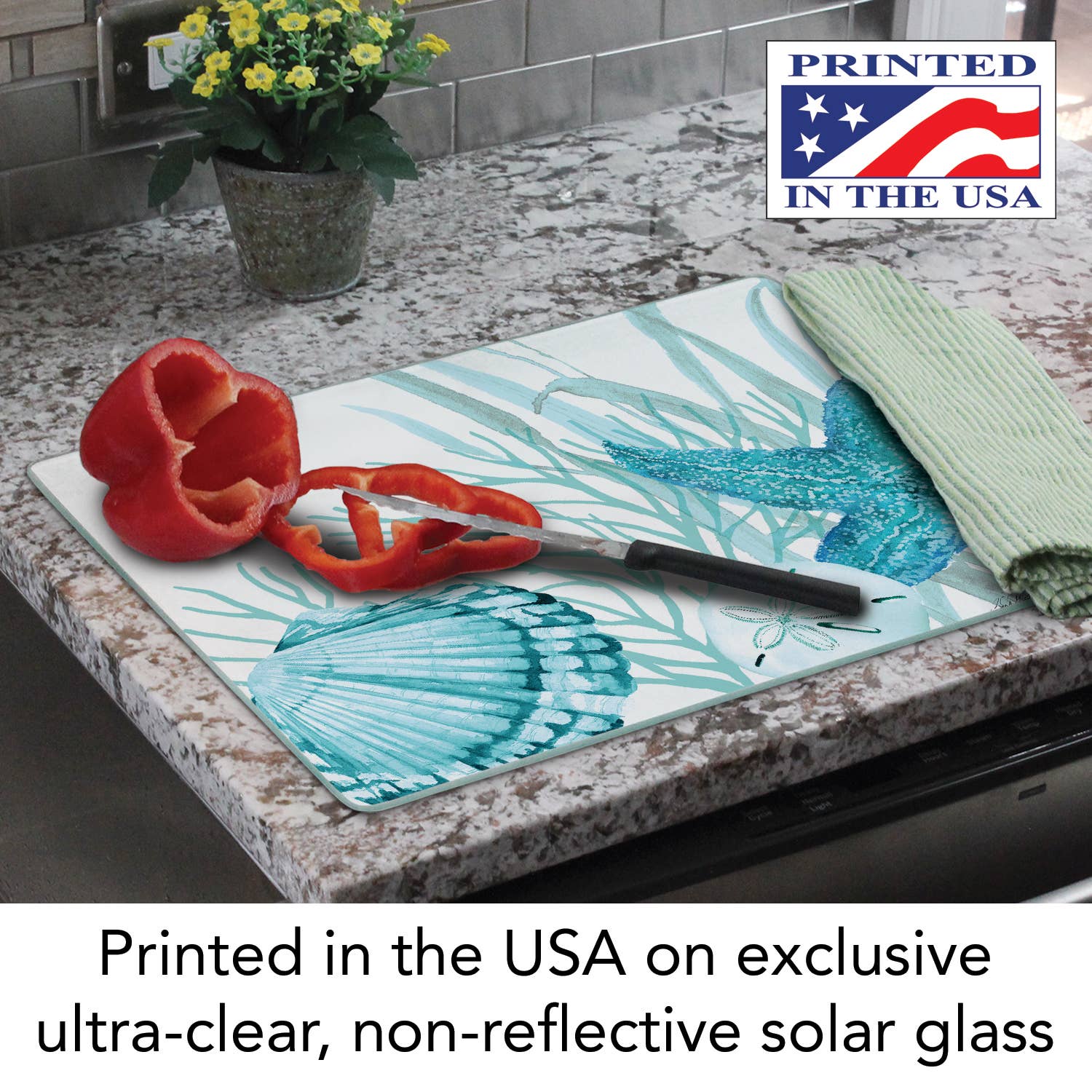 Coral Life Glass Counter Saver & Cutting Board – 15" x 12"