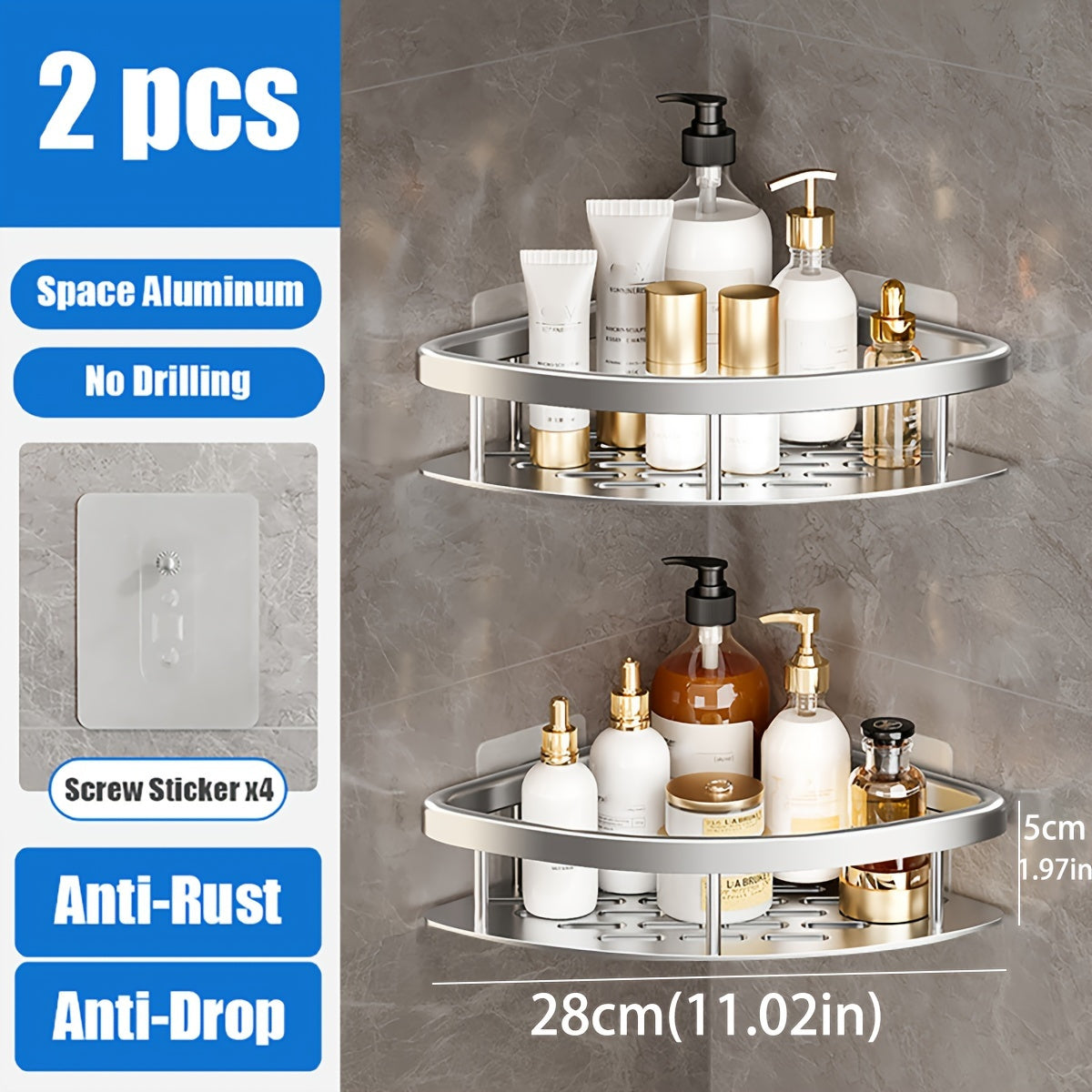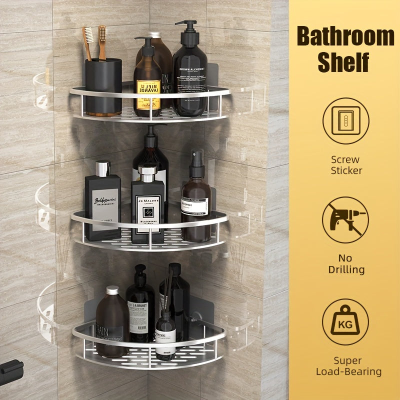 Crafted from robust and sustainable material, it holds everything from your scrub-a-dub essentials to your luxury skincare bottles with zero stress. With its chic design, it perfectly complements your modern living space and vibes with any decor. So whether you're going for that minimalist aesthetic or a cozy spa feel, this corner shower caddy set will have you and your bathroom looking and feeling like a million bucks. Say goodbye to chaos and hello to your new shower BFF! 🚿✨