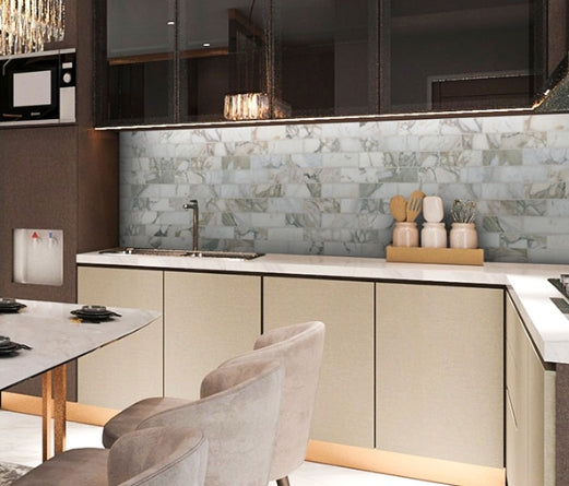 Coronado 2” x 6” Subway marble tile showcases a captivating vein structure that seamlessly blends shades of green, gray, and rust, all presented with a refined honed finish. This tile effortlessly complements a range of grout colors, making it suitable for both classic and modern designs. With its mesh-back mosaic design, installation is a breeze, making it an excellent choice for accent walls, backsplashes, and residential floors in kitchens, bathrooms, laundry rooms, and more. Perfect for both residential and commercial environments, this versatile tile strikes a harmonious balance between timeless beauty and practical functionality.