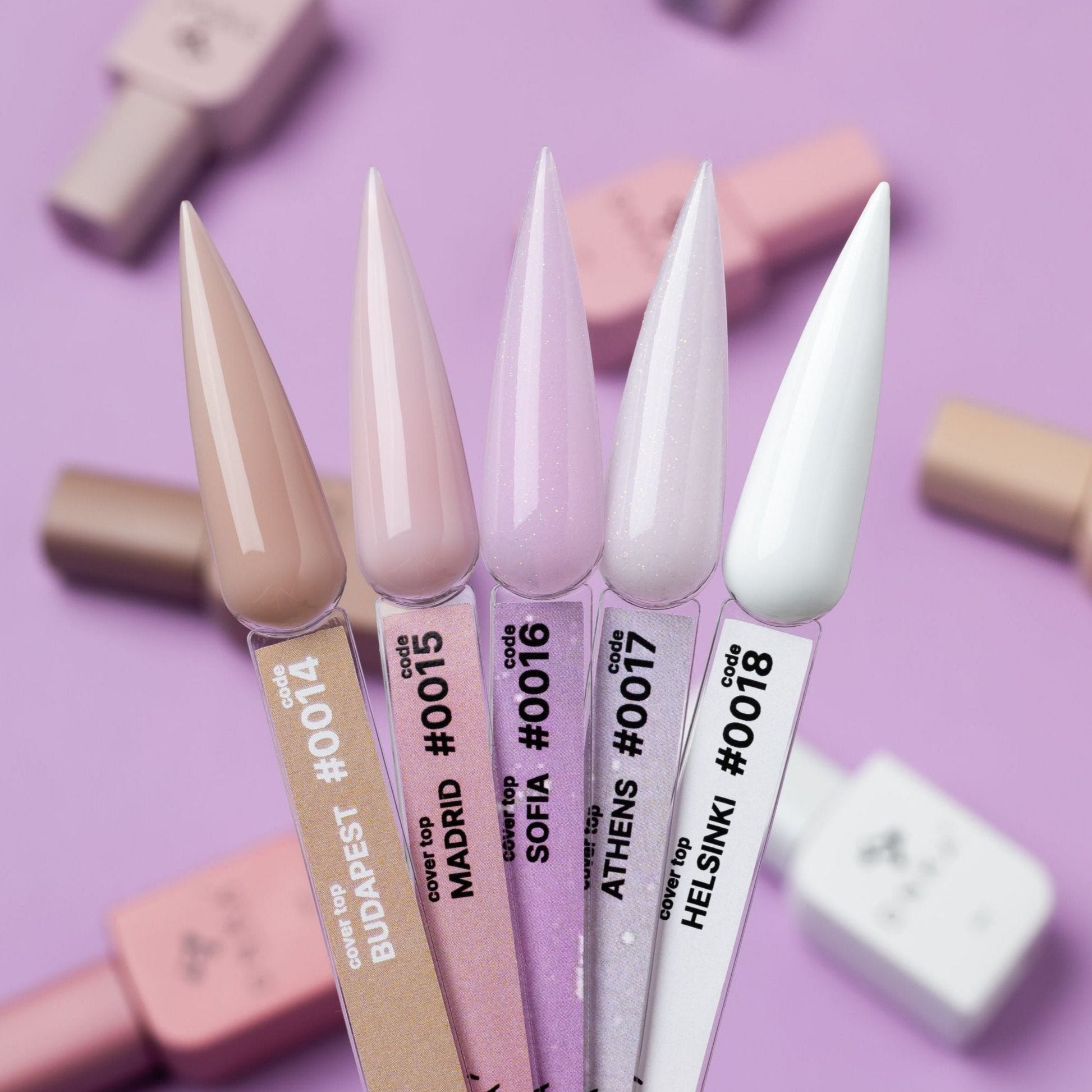 This is a collection of camouflage tops without a sticky layer in soft nude shades. They perfectly hide the irregularities and defects of the nail plate, which allows you to save time during the manicure procedure.