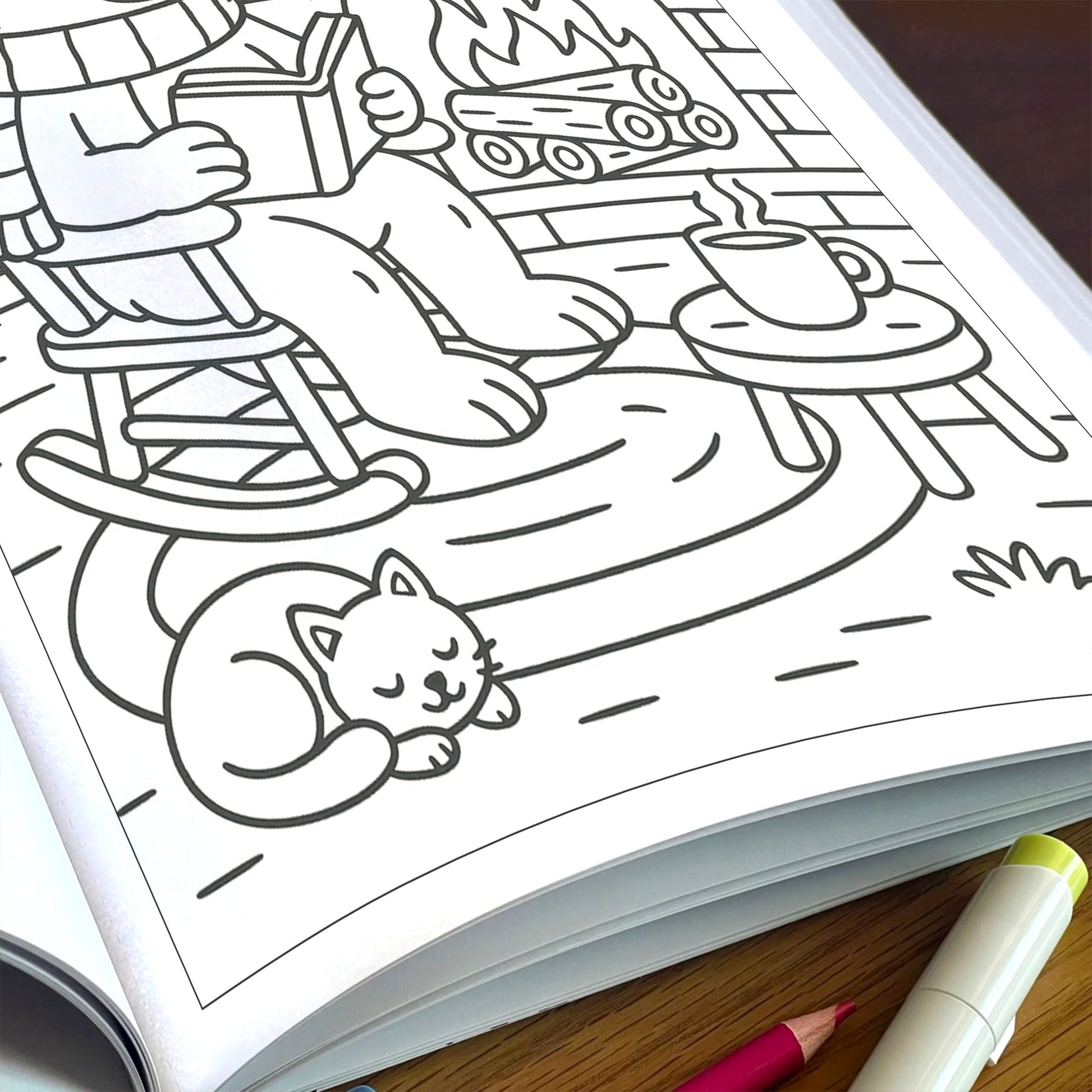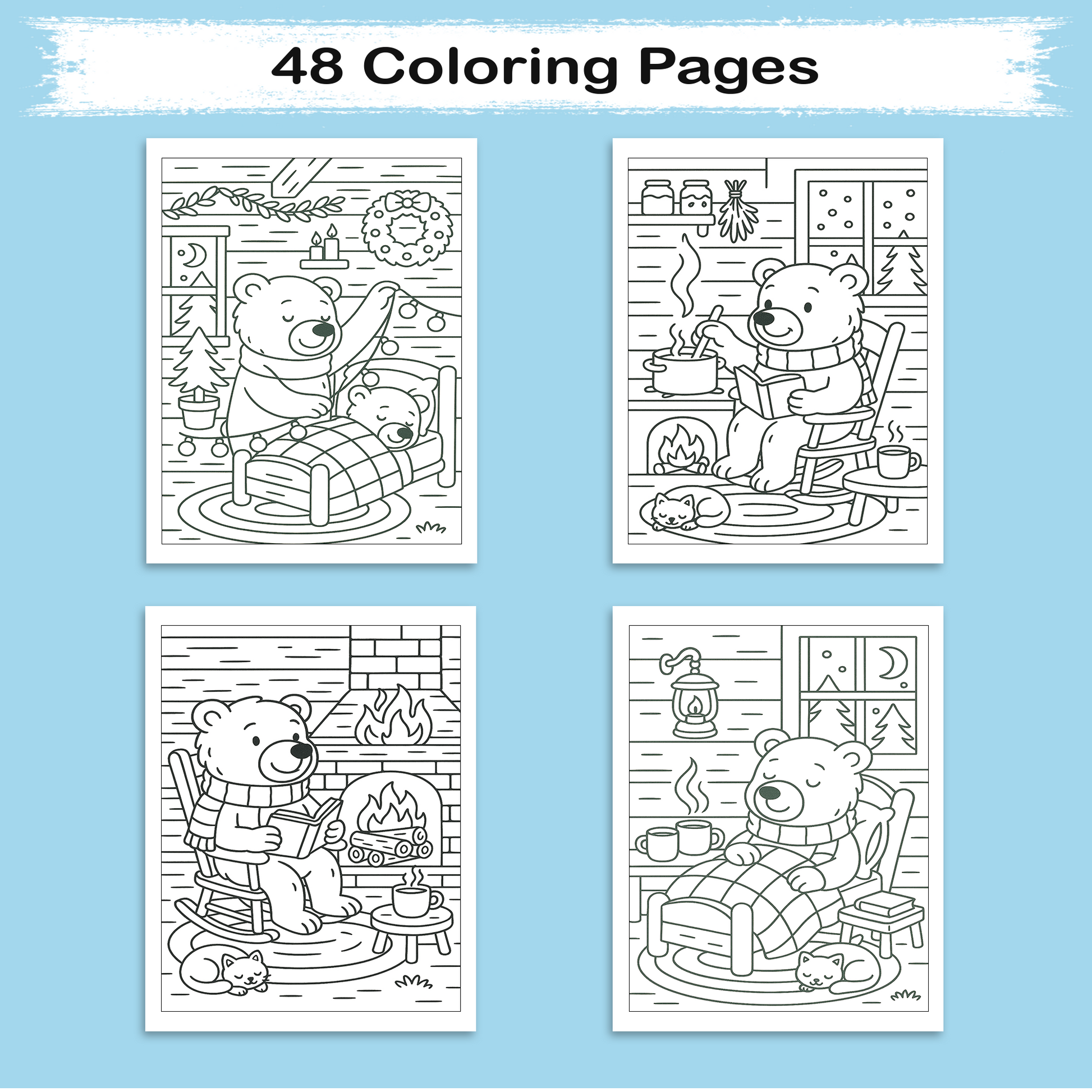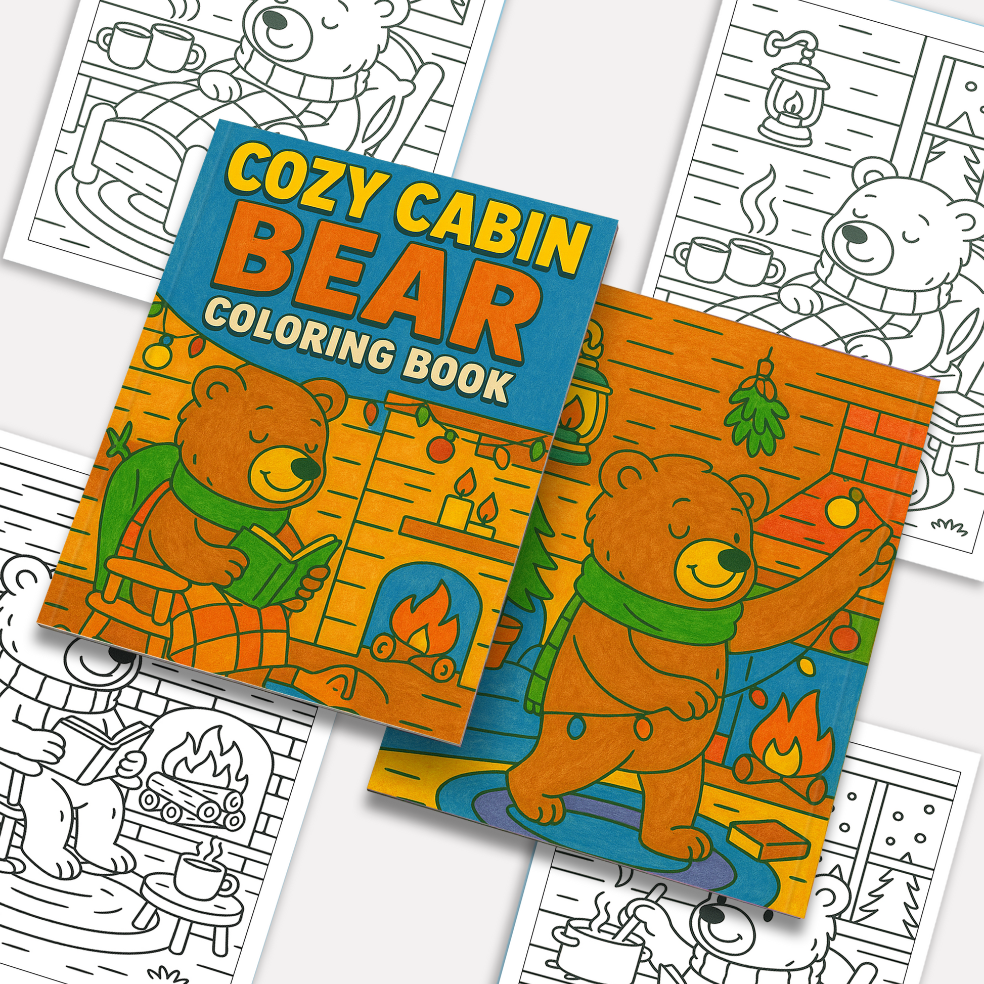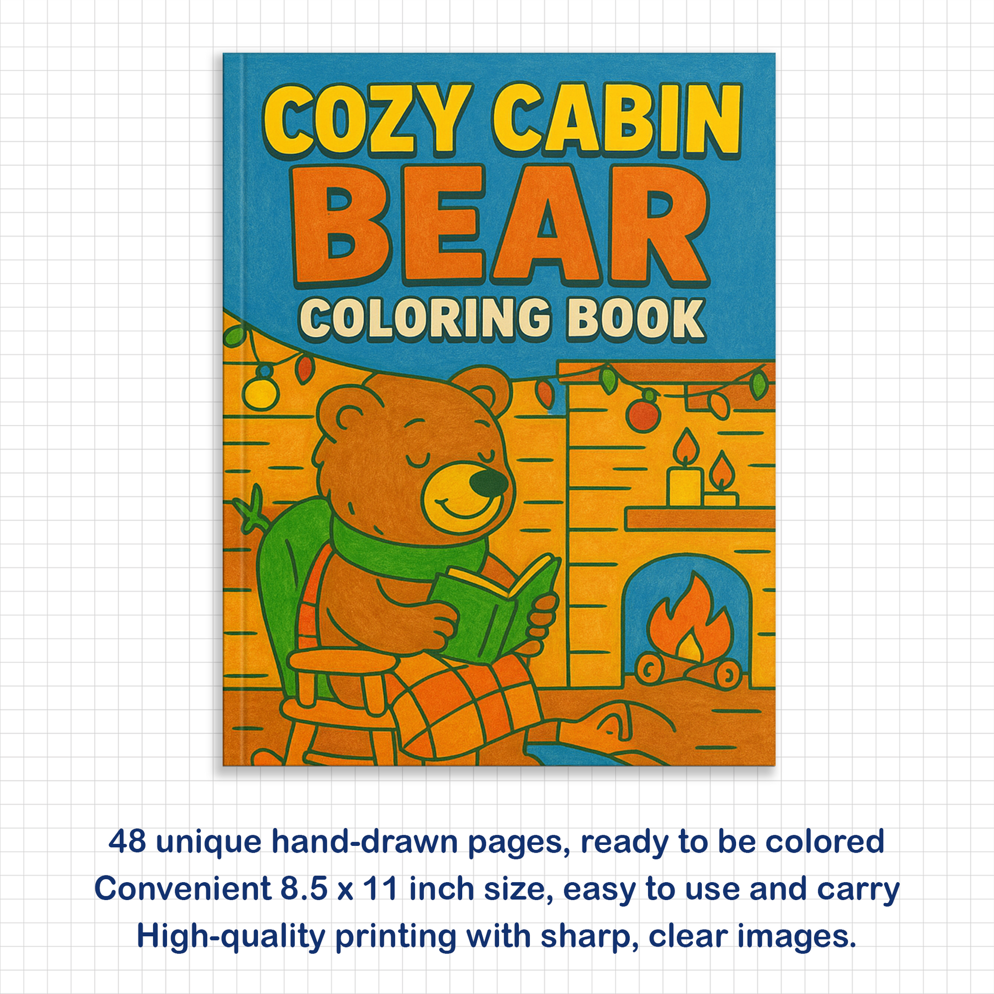 Cozy Cabin Bear – Animal Coloring Pages – 48 Pages – Warm, Rustic, Woodland Vibes – For Kids