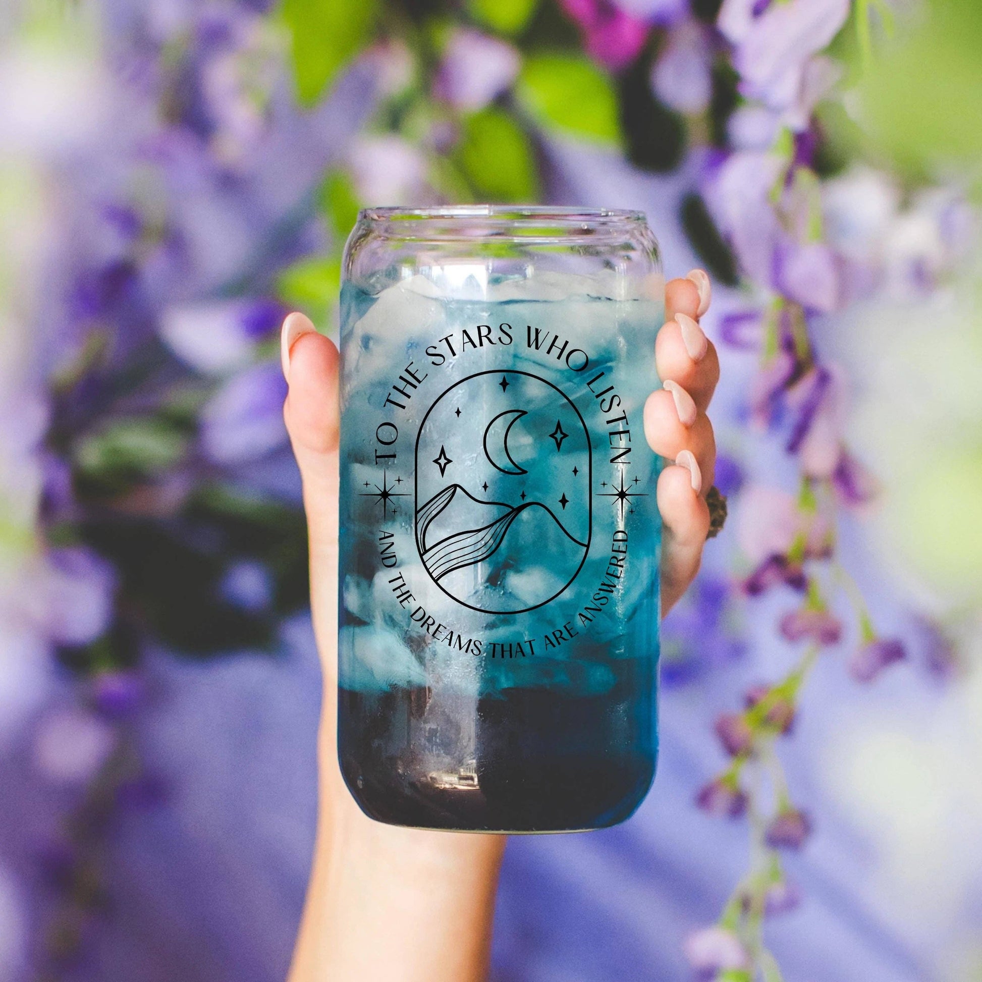 Indulge in your bookish side with this glass, perfect for fantasy readers. Featuring a reference to one of Sarah J. Maas' most famous quotes. It's a must-have for any Night Court Member. Cheers to the stars who listen (and read)!