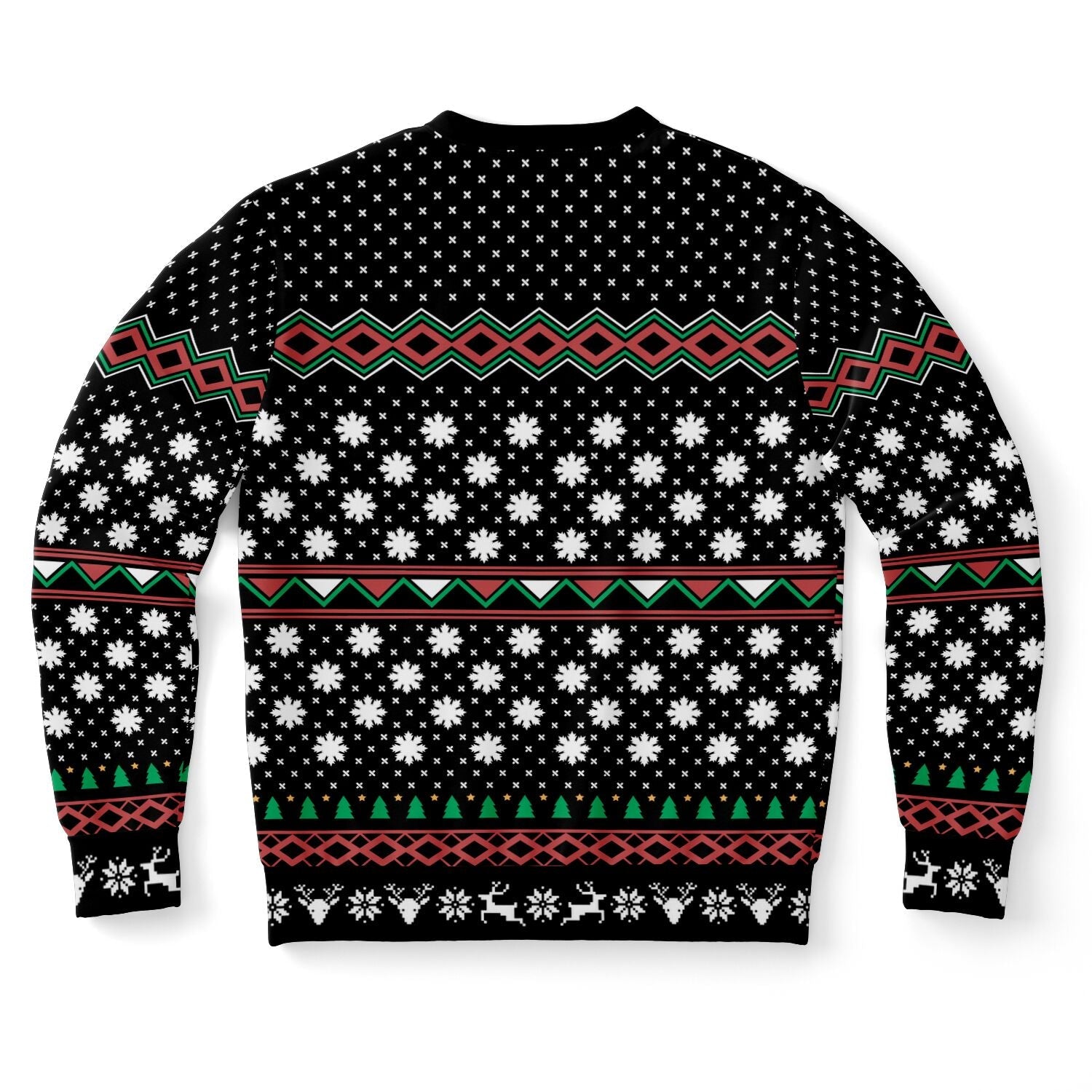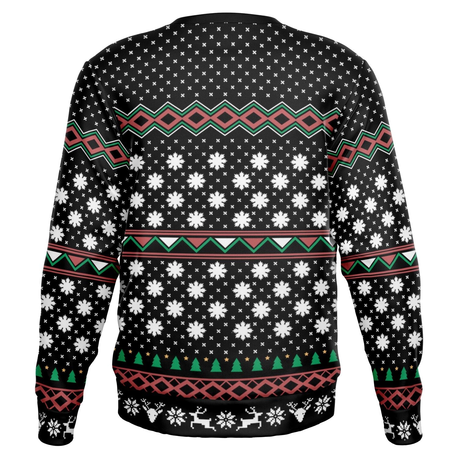 This holiday sweater features festive gnomes and a bowl of yarn with a cozy-cute crochet pun to match.