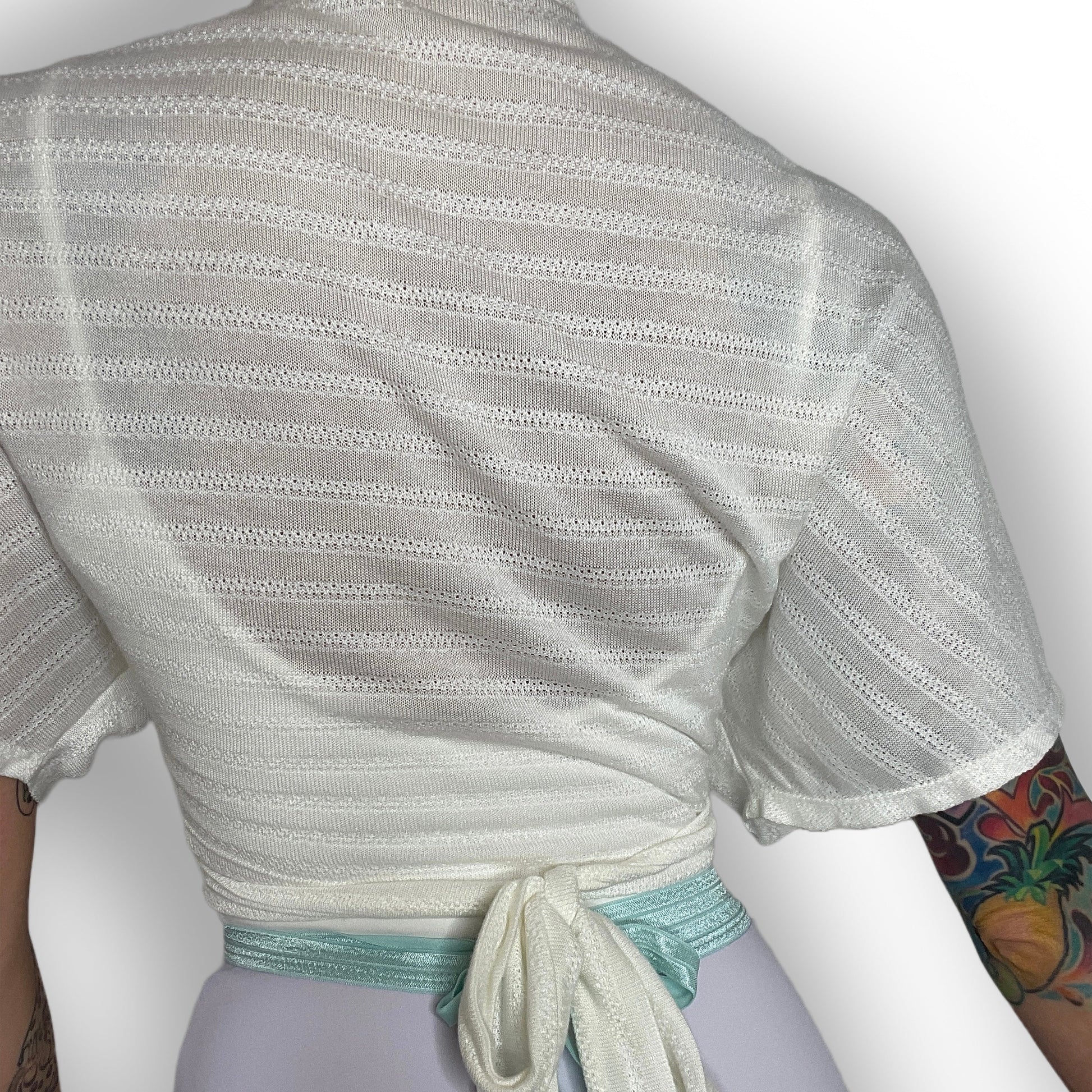 Cropped Sweater Knit Wrap Top Ballet Warm Up - White Intricate
