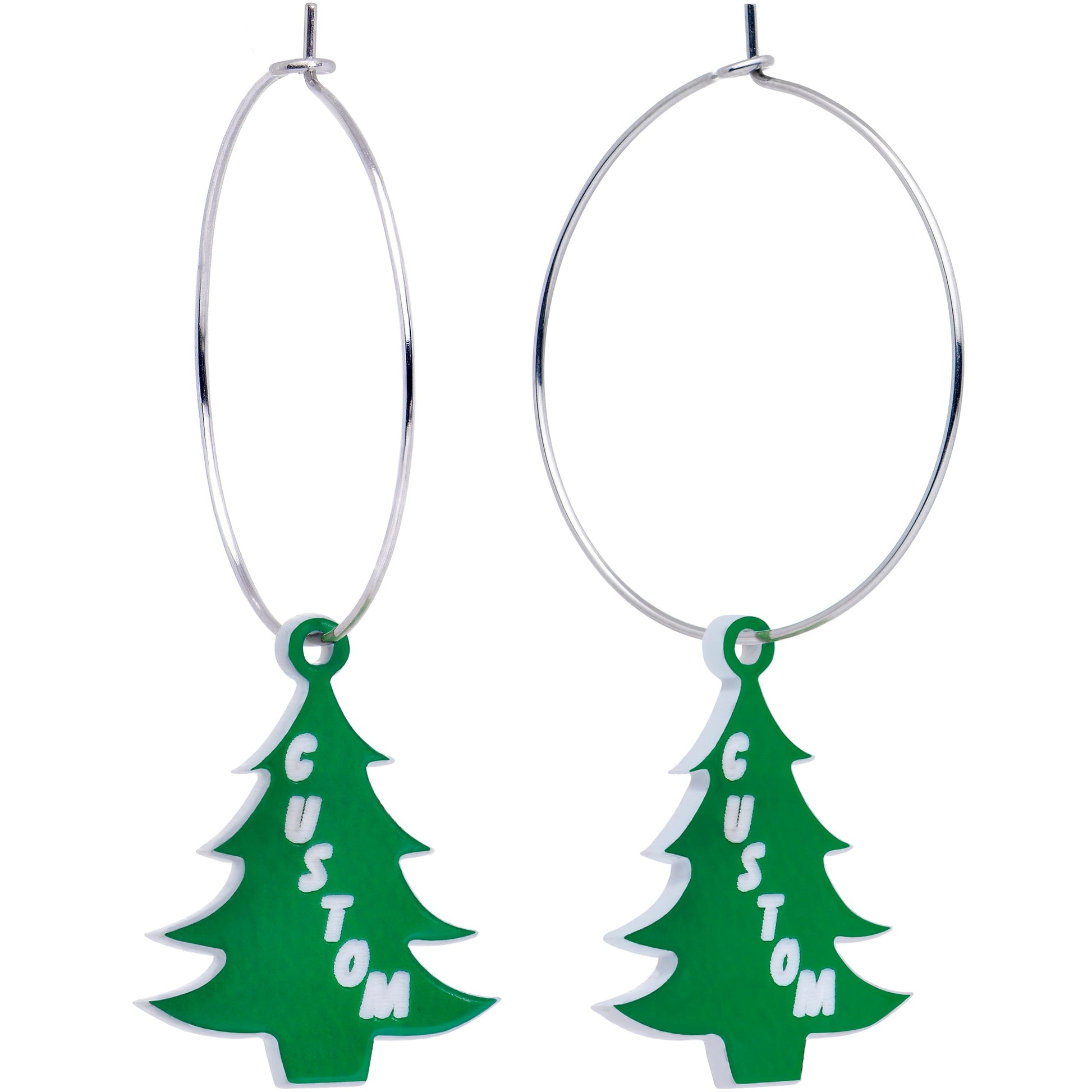 Celebrate the holiday season with these Stainless Steel hoop Christmas earrings. Why decorate the tree for the holidays when you can decorate yourself with trees like the ones on these hoop earrings for pierced lobes?