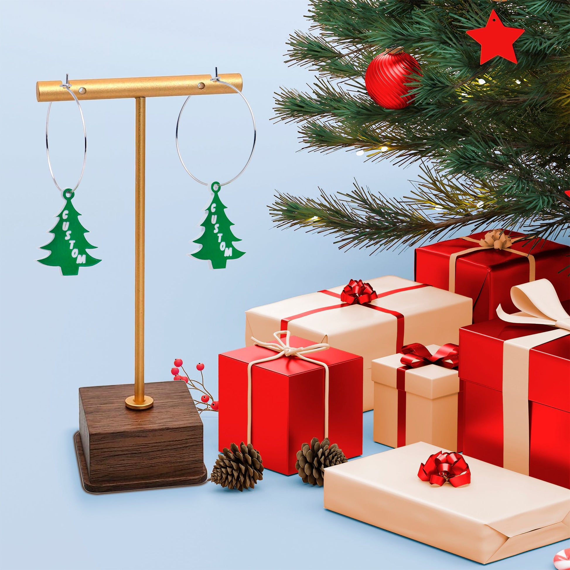 Each earrings features a green acrylic Christmas tree charm with simple detailing and lightweight wear. You can even get them personalized with initials, a name, or short word to make them extra special as a gift for a loved one or yourself. Decorate yourself in one-of-a-kind style with these festive and customizable Christmas tree earrings. Sold as a set of two.