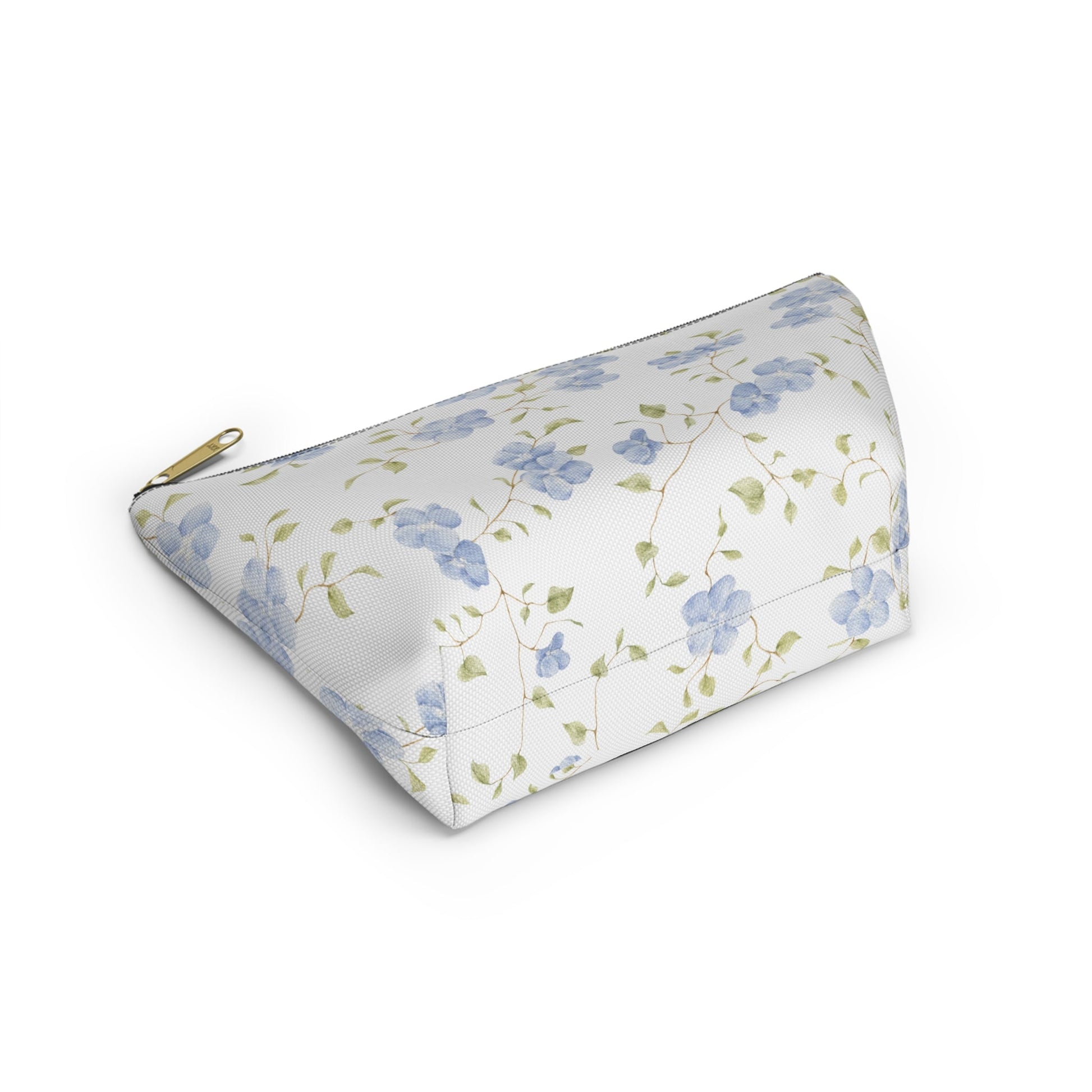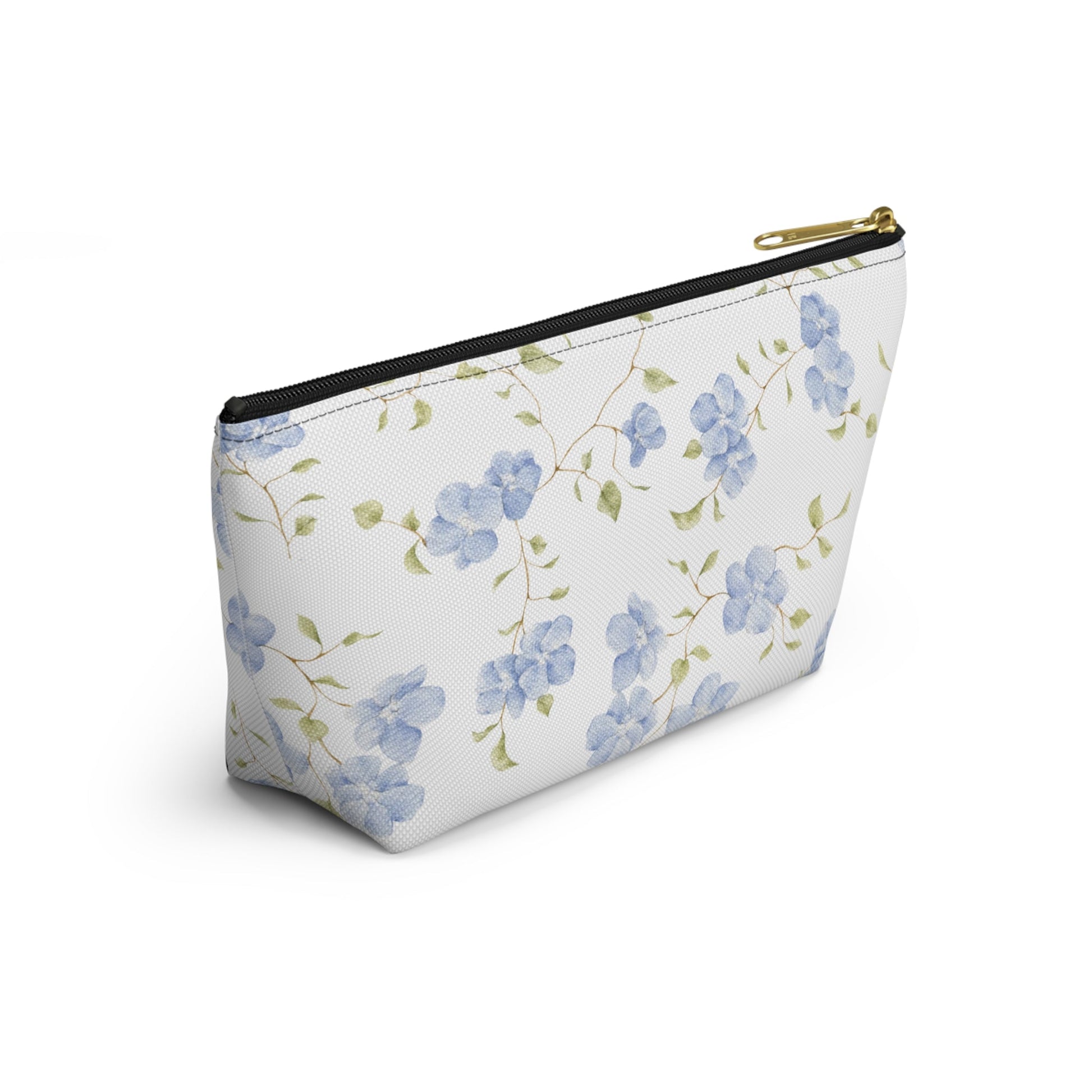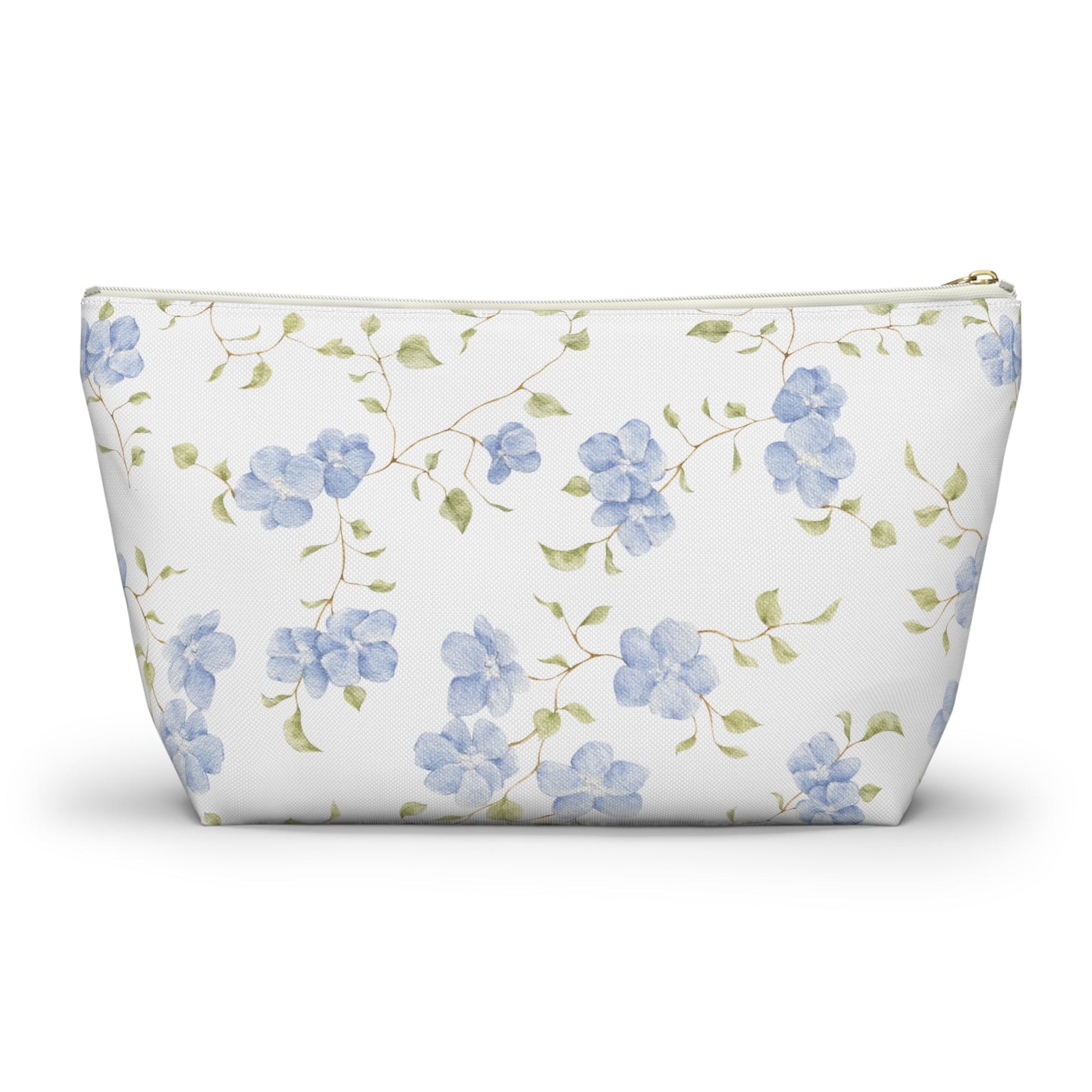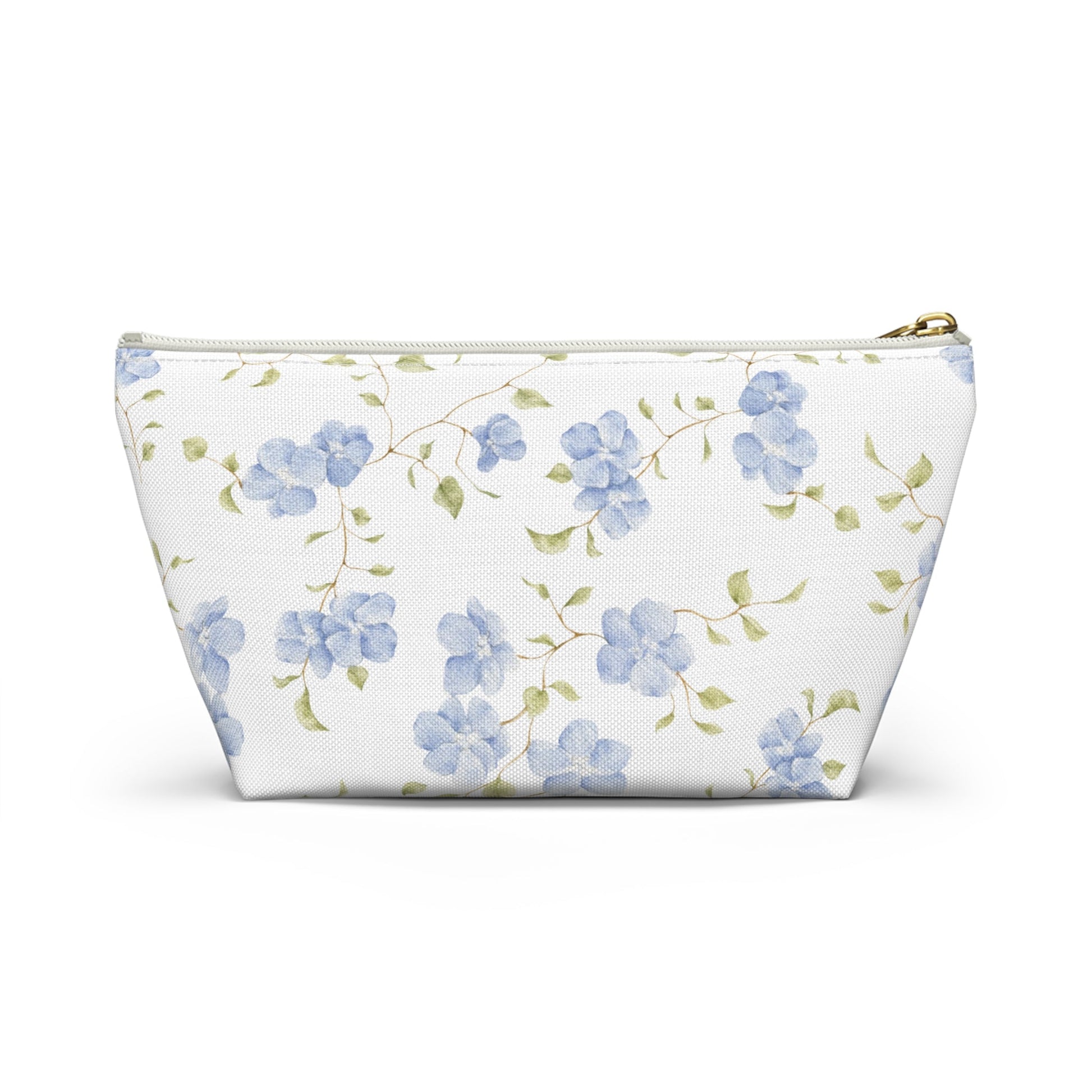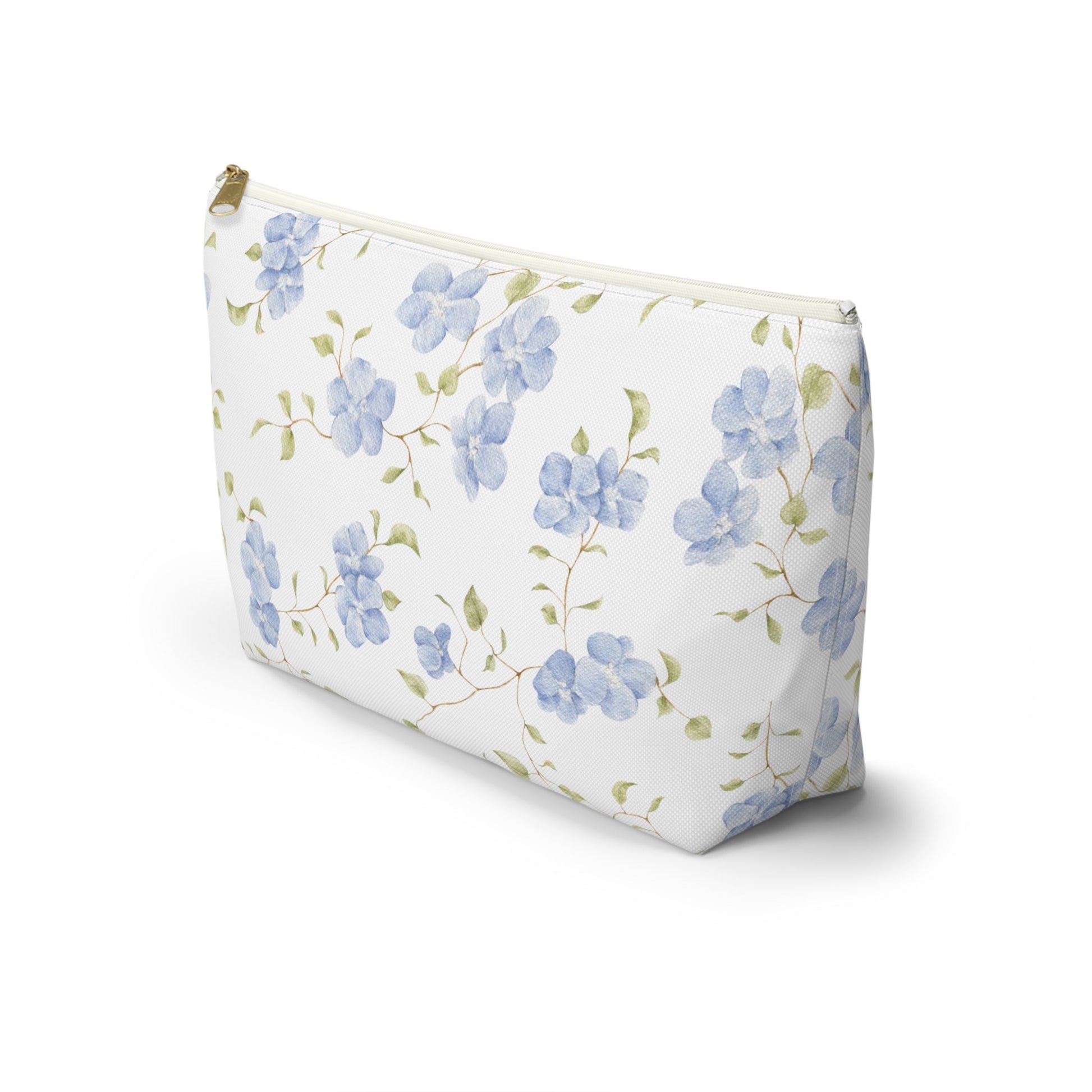 Customizable: Floral Accessory Pouch, Cosmetic Bag, Makeup Organizer, Gift for Her, Travel Essentials, Blue Floral Design