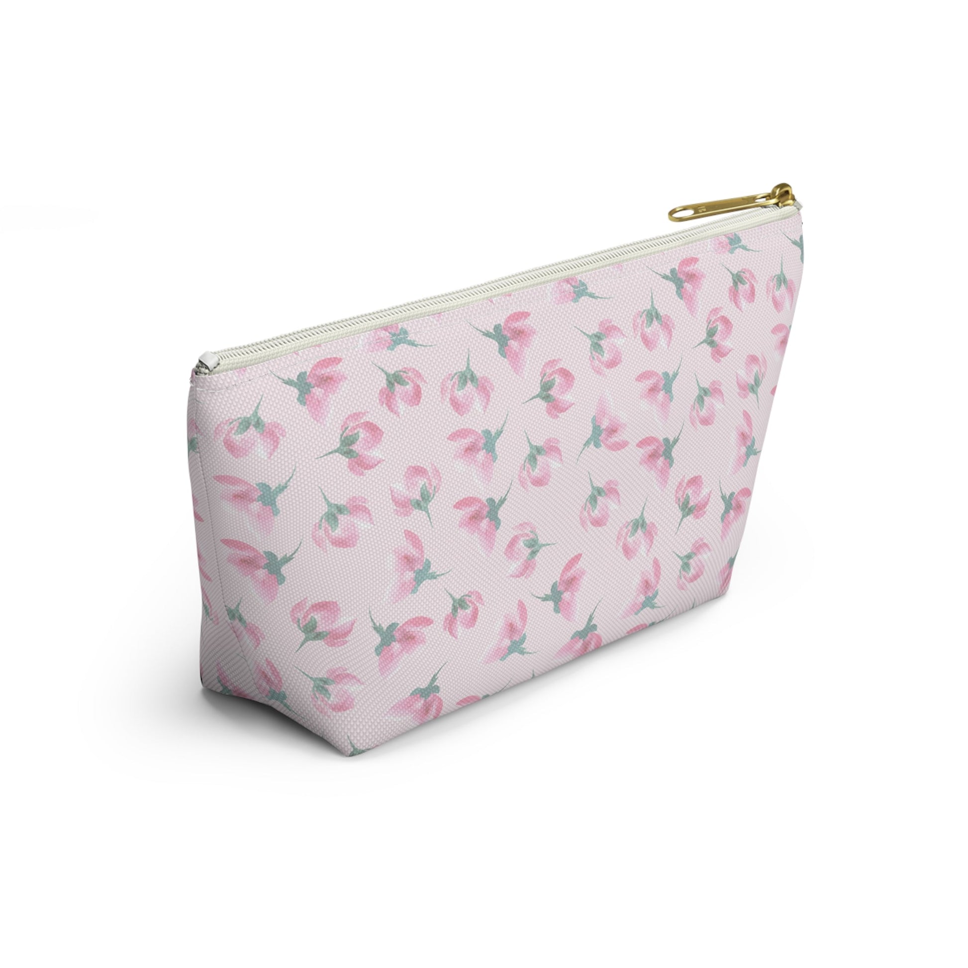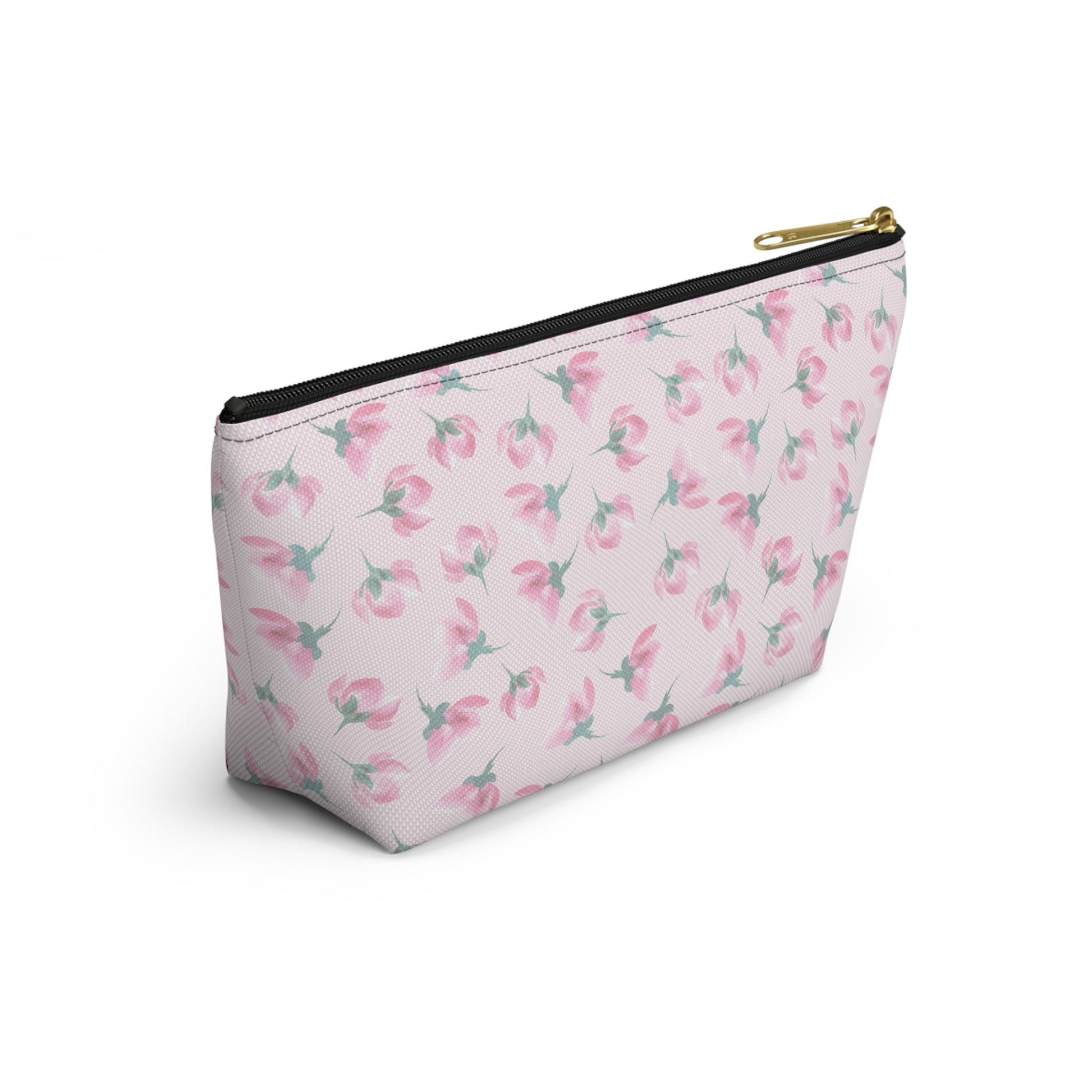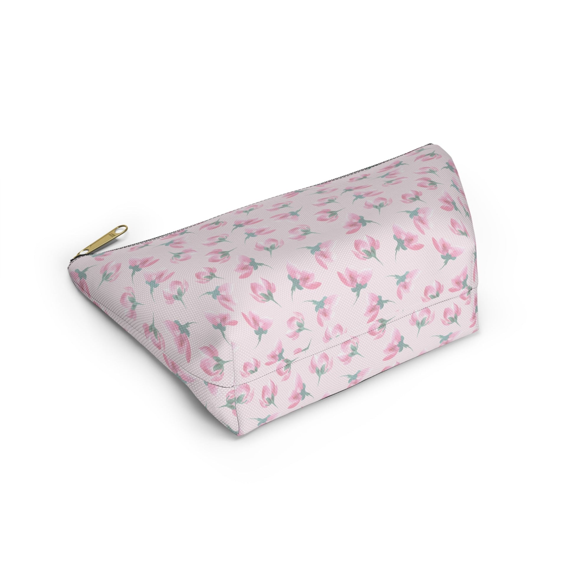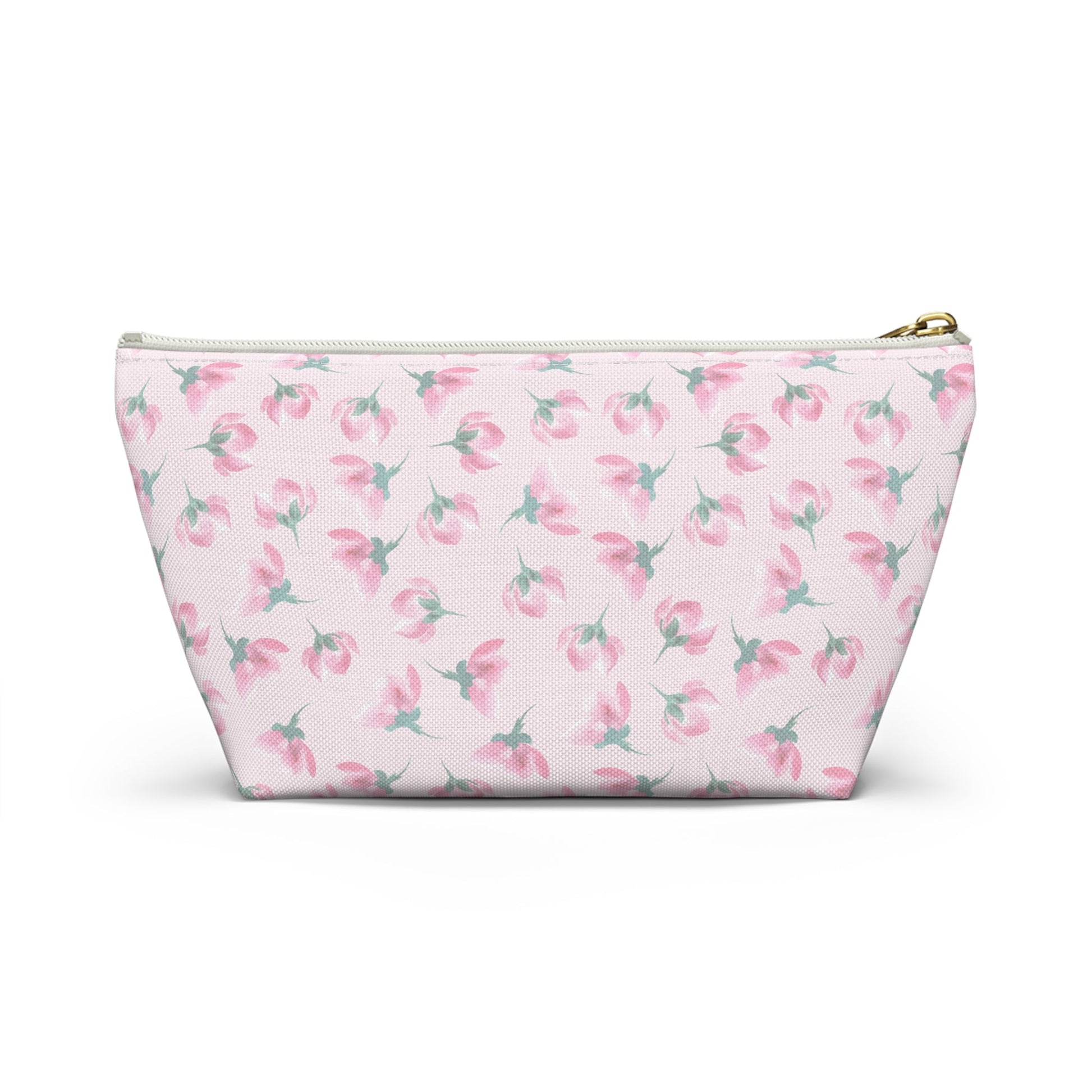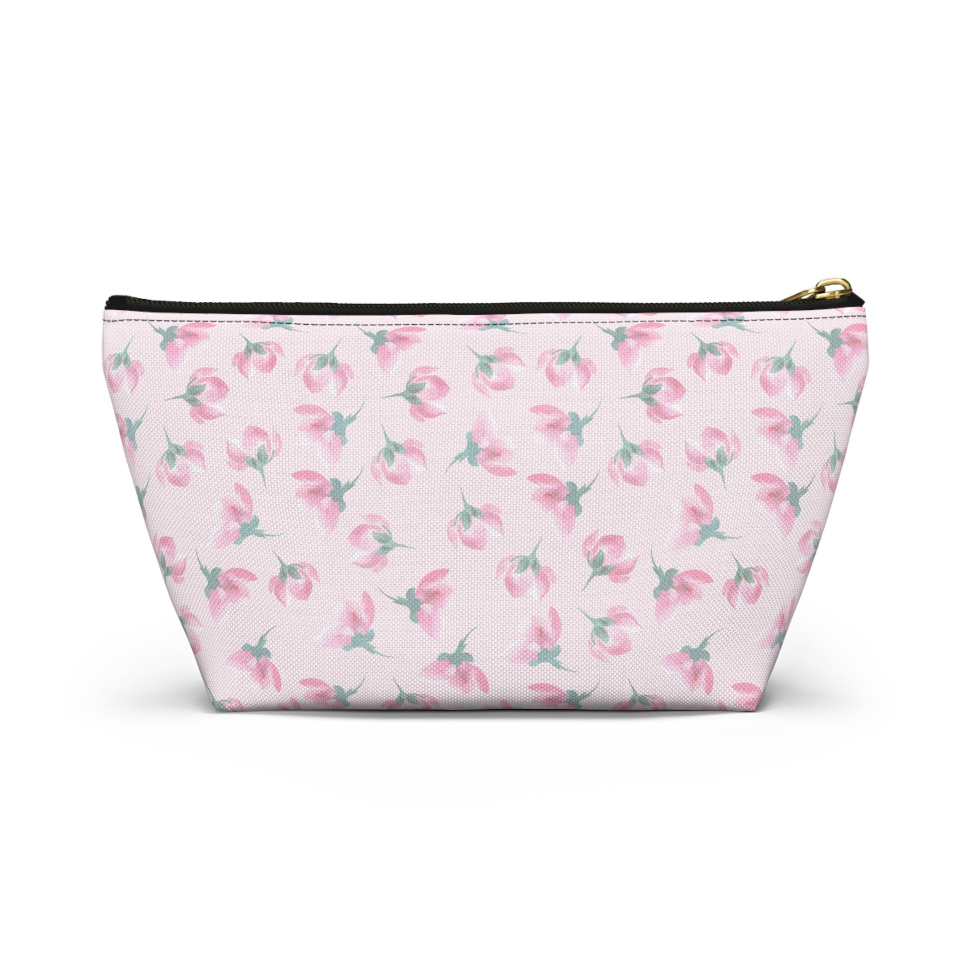 Customizable: Floral Accessory Pouch, Makeup Bag, Travel Case, Pink Flower Pouch, Gift for Her, Cosmetic Clutch, Everyday Organizer