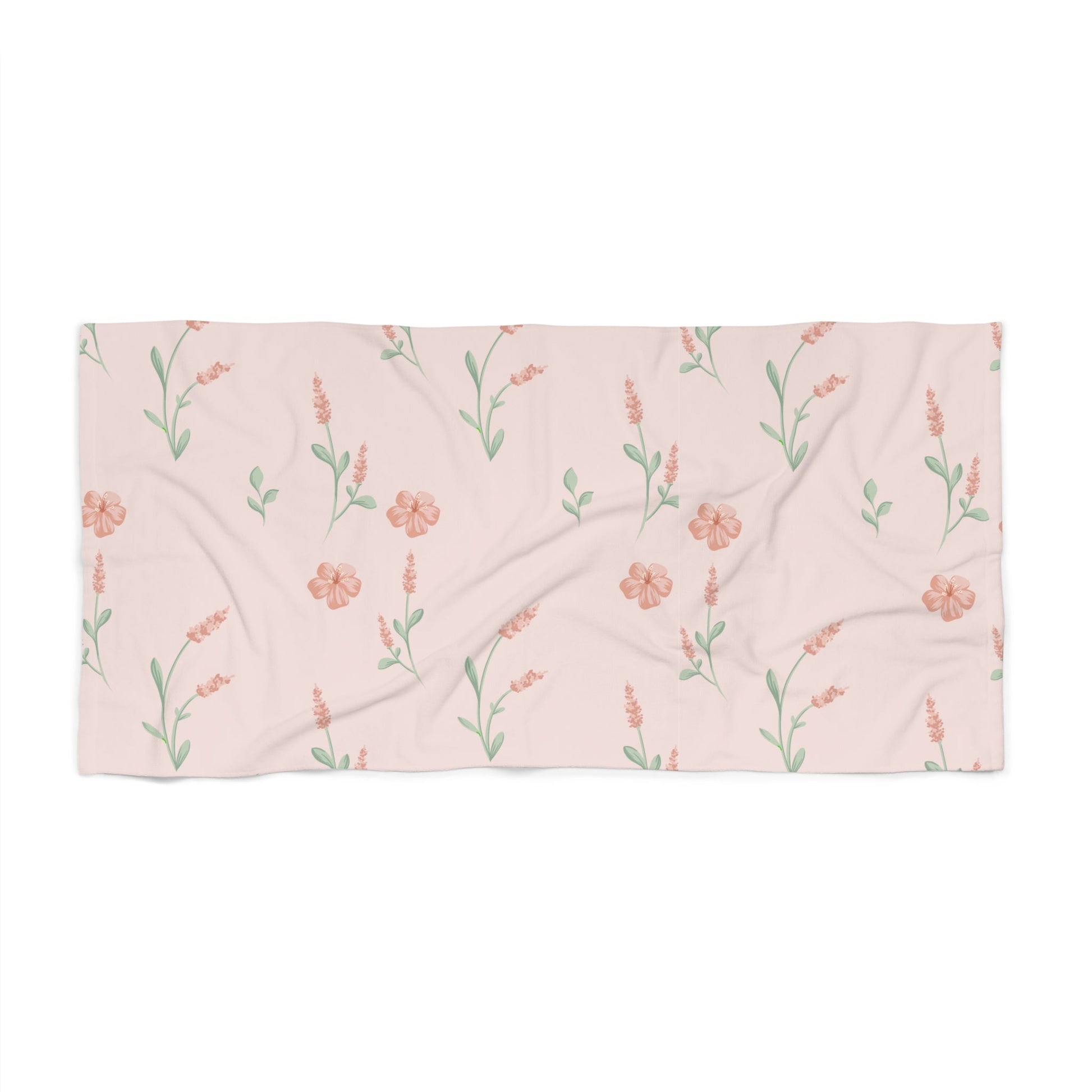 Customizable: Floral Beach Towel - Soft Pink with Blooming Flowers, Perfect for Summer, Pool Days, Picnics, Vacation, Gifts
