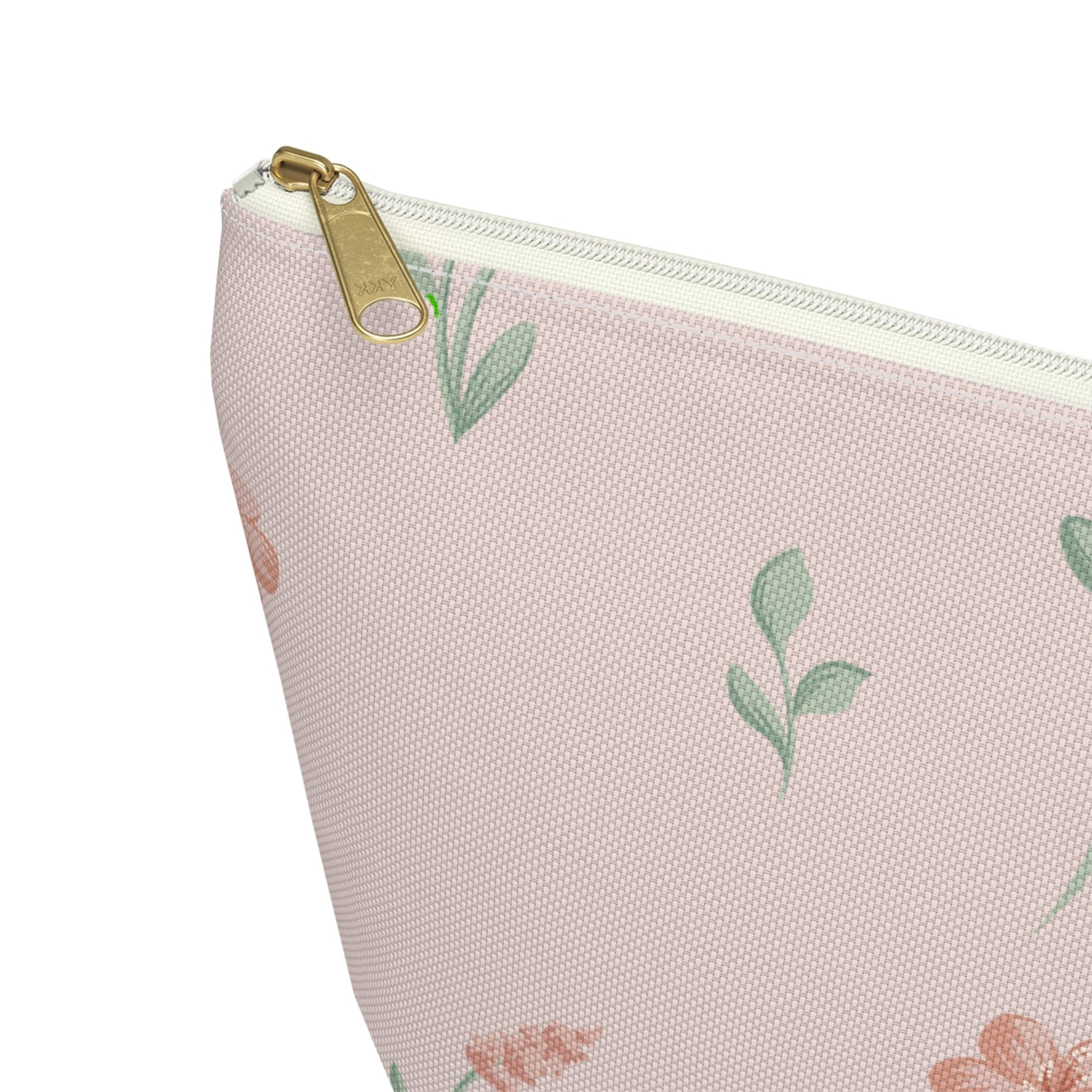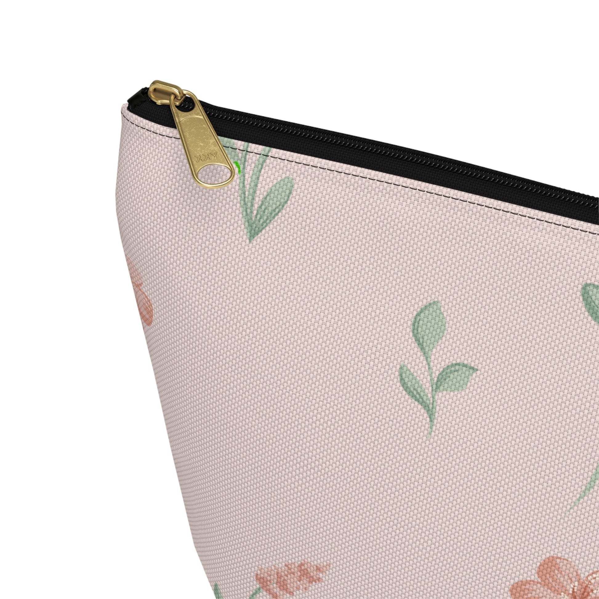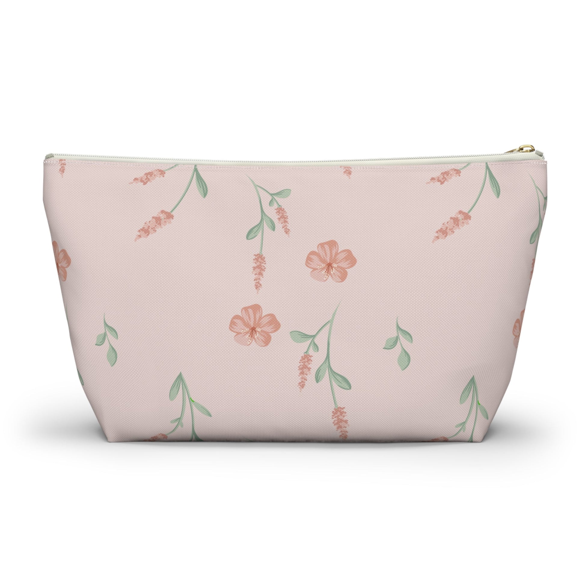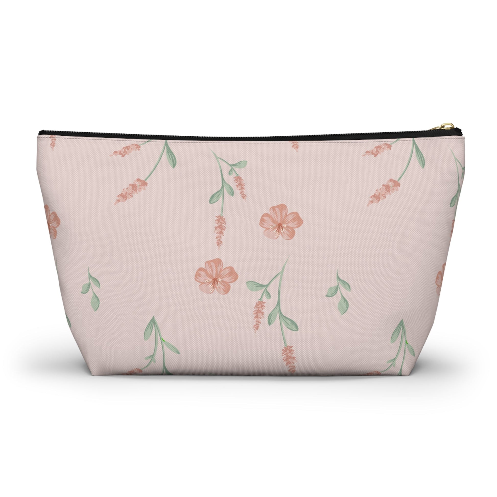 Customizable: Floral Cosmetic Bag with T-Bottom, Makeup Organizer, Flower Print Pouch, Cute Travel Accessory, Gift for Her, Mother’s Day