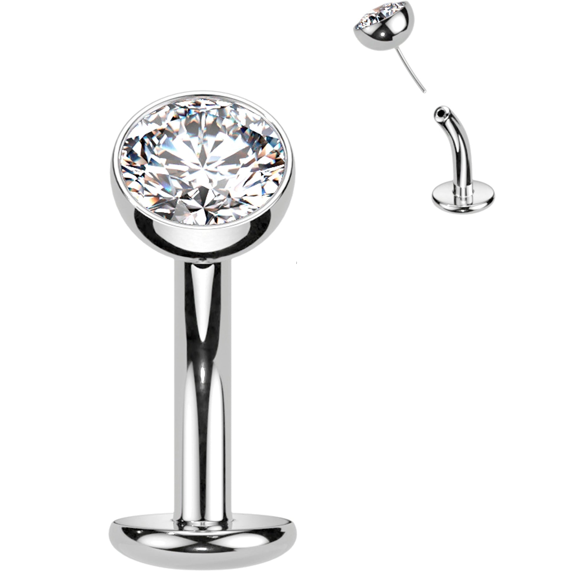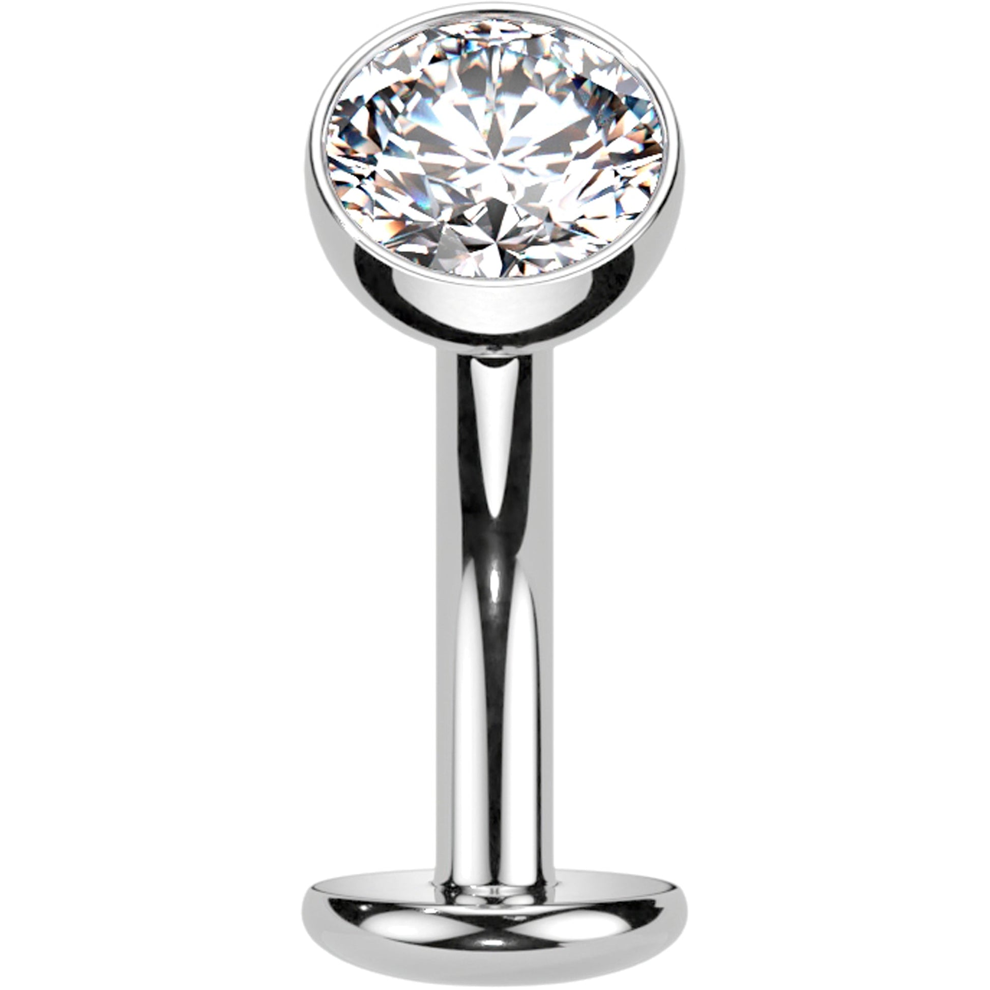 14 Gauge (1.6mm), 5/16" (8mm), ASTM F-136 Titanium, Threadless Push-In Design, Hypoallergenic, 5mm Ball Top Bezel Set Cubic Zirconia